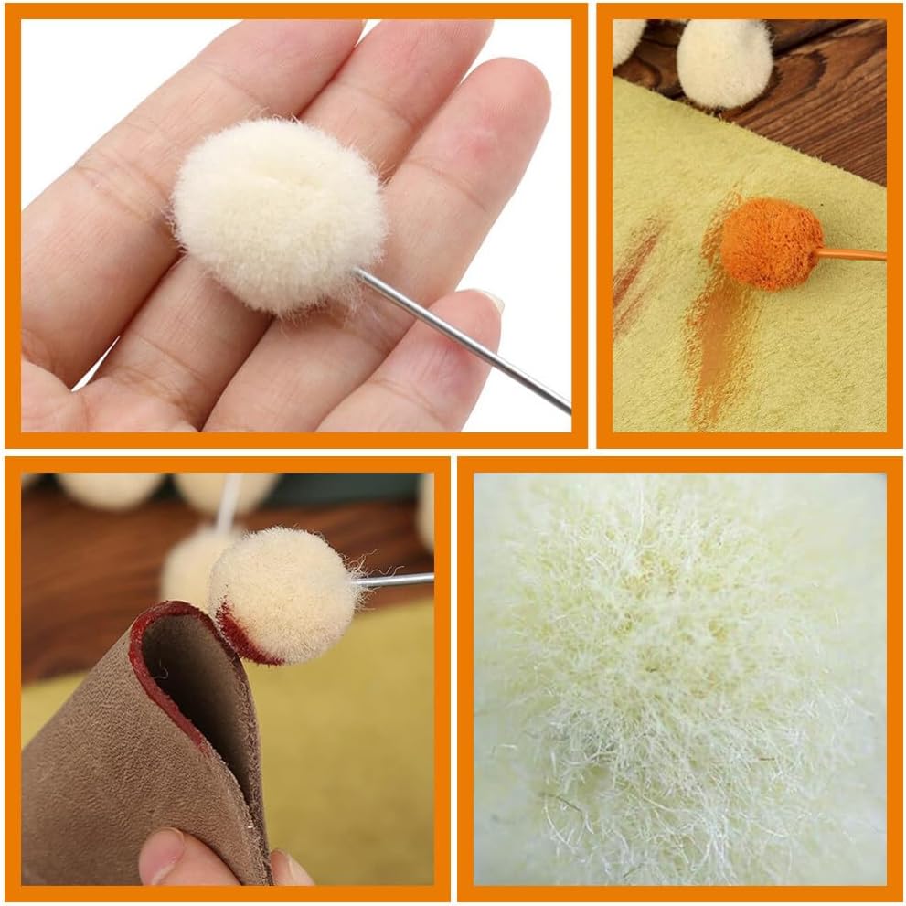 - يشتمل على أداة وضع كرة من الصوف لسهولة وضع الأصباغ والأصباغ واللمسات النهائية على المصنوعات الجلدية.