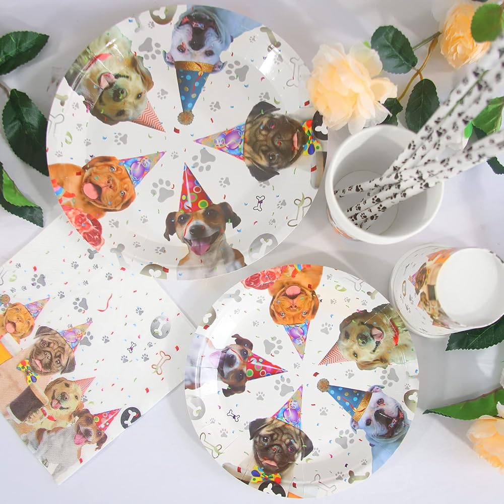 جودة عالية: لن تُطوى أطباق وأكواب حفلات الكلاب السميكة والصلبة عند تسليم الطعام، مما يوفر تجربة ممتعة لحفل كلبك ذي الطابع الخاص