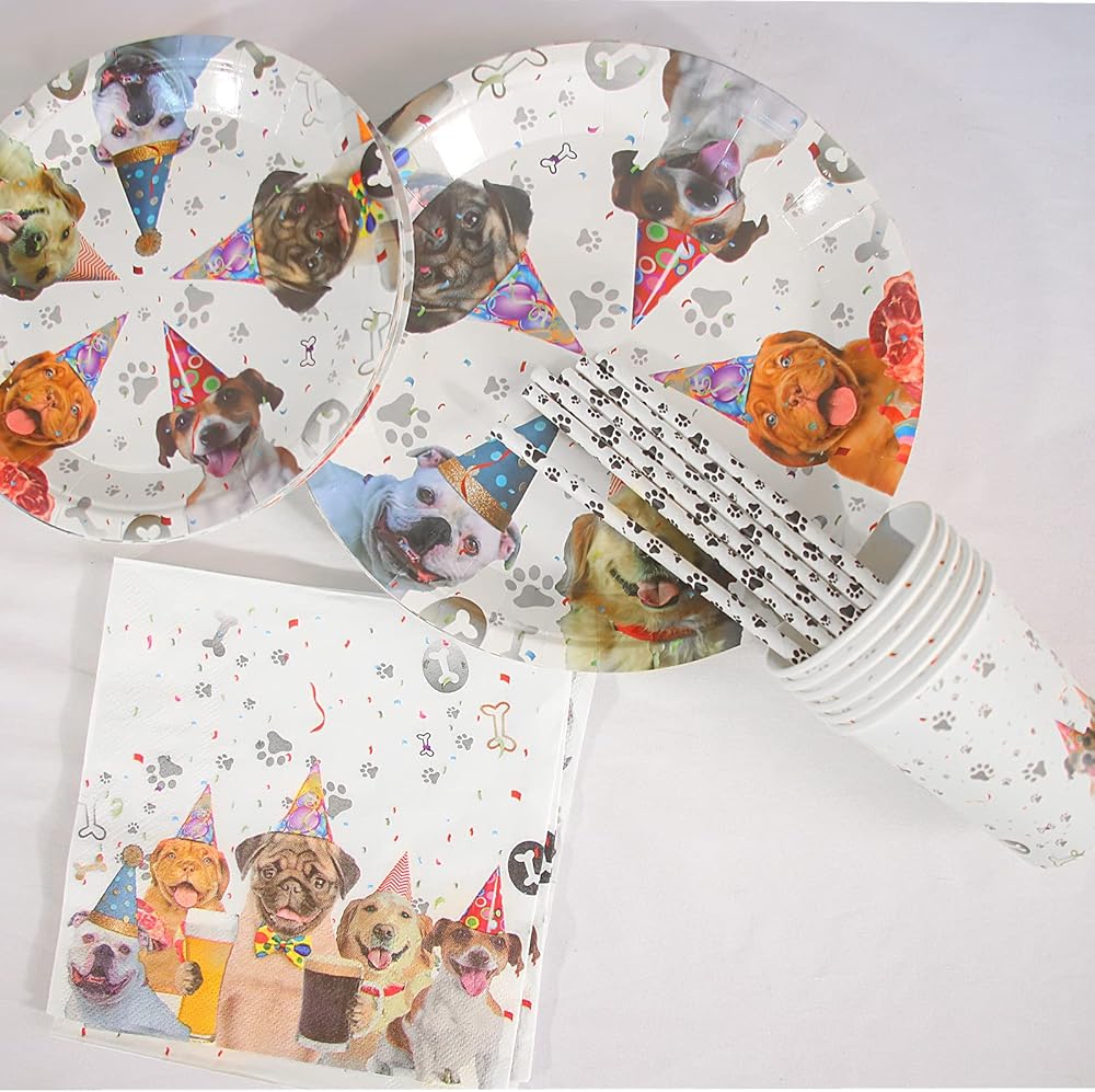 نمط كلب لطيف: مجموعة أدوات المائدة ذات موضوع الكلب جنبا إلى جنب مع نمط وجه الكلب الحي والطباعة على مخالب الكلب، إنها زخرفة جميلة، مليئة بالحيوية وثبات اللون