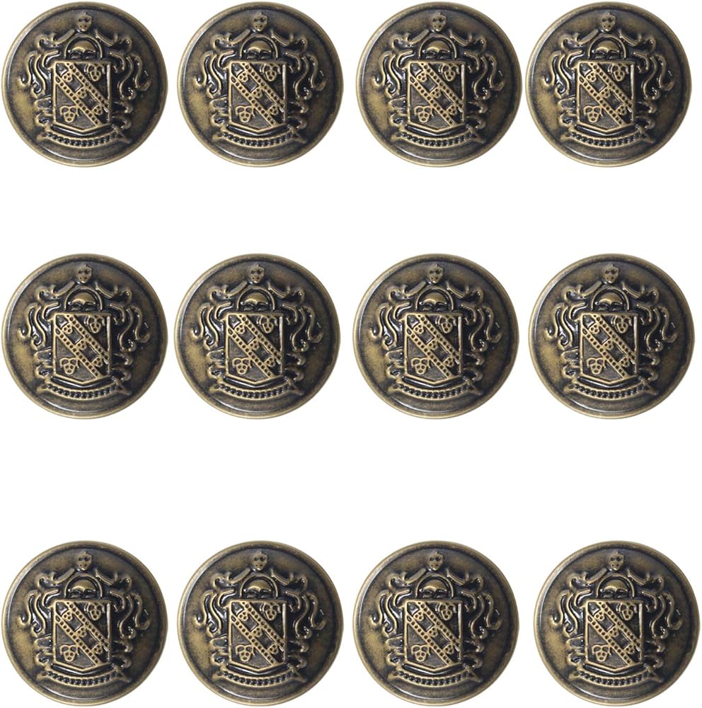 مجموعة أزرار سترة معدنية مكونة من 12 قطعة - للسترة والبدلات والمعطف الرياضي والزي الرسمي والسترة 25 مم (برونزي)