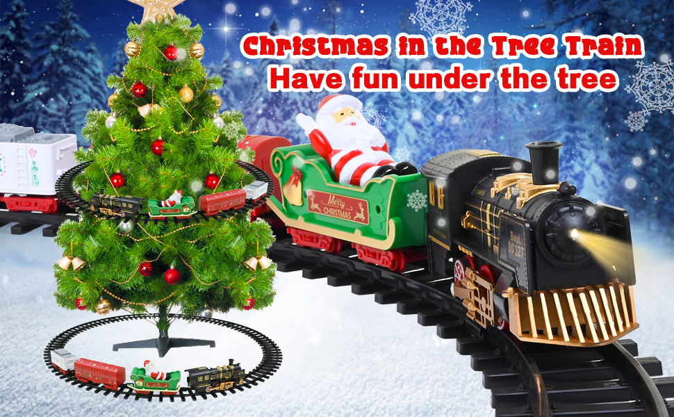 مجموعة قطار الكريسماس من نيراجرون، قطار كهربائي حول شجرة الكريسماس، مع ضوء وصوت، العاب قطار تعمل بالبطارية مع مسارات، مجموعات السكك الحديدية، هدايا الكريسماس ورأس السنة الجديدة للاولاد والبنات