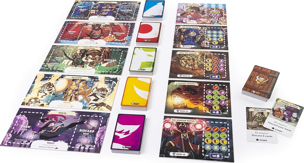 قاتلوا معًا...أو هلكوا في لعبة 5-Minute Dungeon! أنت وفريقك من الأبطال الشجعان محاصرون في سلسلة من خمسة زنزانات مميتة. للخروج، يجب عليك محاربة الوحوش الخطرة، والتغلب على العقبات الغادرة وهزيمة زعماء الزنزانة المهووسين - كل ذلك في غضون 5 دقائق! ابدأ بلعب لعبة الورق المثيرة هذه عن طريق اختيار واحد من عشرة أبطال ومجموعة الأسلحة المقابلة. اختر بطاقات الوحوش والعوائق والزنزانات وتسابق لمقاتلتهم جميعًا! في لعبة السفر هذه، المثالية لأخذها أينما ذهبت، لا توجد دورات - يقوم جميع اللاعبين بإلقاء أوراقهم بأسرع ما يمكن! يتطلب الأمر العمل الجماعي والتفكير السريع لمحاربة ما يتربص في الزنزانة. لذا اجمع شجاعتك وذكائك والعب لعبة 5-Minute Dungeon المثيرة!