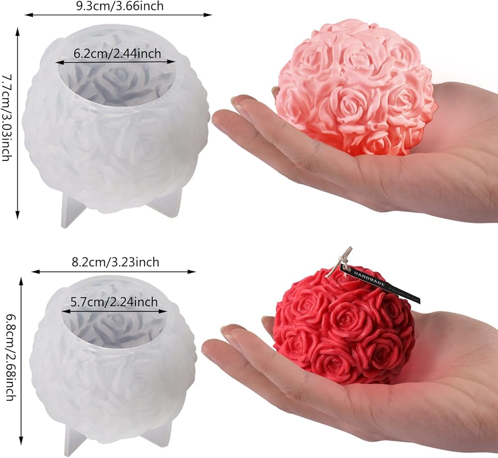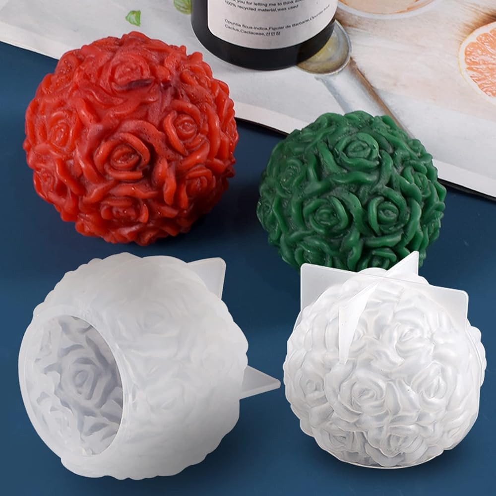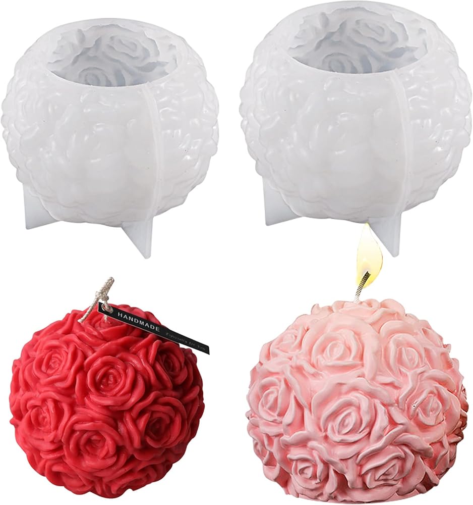 Voaesdk قطعتان كبيرتان من قوالب الراتنج على شكل كرة وردية، قوالب سيليكون كروية على شكل زهور وردية ثلاثية الأبعاد لصنع الشموع، قوالب إيبوكسي سيليكون مصنوعة يدويًا لعيد الحب من أجل ديكور منزلي مصنوع يدويًا من الشمع والشمع والطين والراتنج
