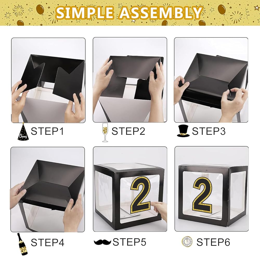 【Easy to Assemble】The Happy New Year balloon box set is easy to assemble, just take out the box and fold it, paste the letters and decorative cards on the box, and then put the balloons in, you only need a few minutes to get a cute decoration set, simple and convenient, for you Makes for a cute and fun New Year party.