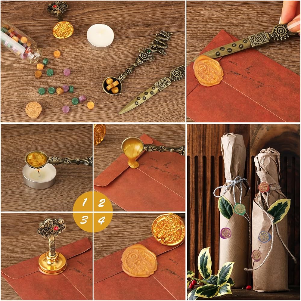 • كيفية ختم الشمع: 1. احصل على نمط إغلاق الشمع الكامل، تحتاج إلى وضع 4 إلى 5 خرزات شمع في ملعقة الشمع لتسخينها، نظرًا لأن المعدن له موصلية حرارية، فمن المستحسن لف نهاية الشمع. ملعقة إغلاق بمنشفة أثناء التسخين. 2. انتظر حتى تذوب حبات الشمع تمامًا، ثم اسكب سائل الشمع على الجسم الذي يحتاج إلى الشمع، وانتظر فقط لمدة 15 ثانية لإزالة ختم ختم الشمع. يمكن استخدام أختام الشمع على نطاق واسع لختم الحروف/أختام النبيذ/زخرفة الحرف اليدوية.