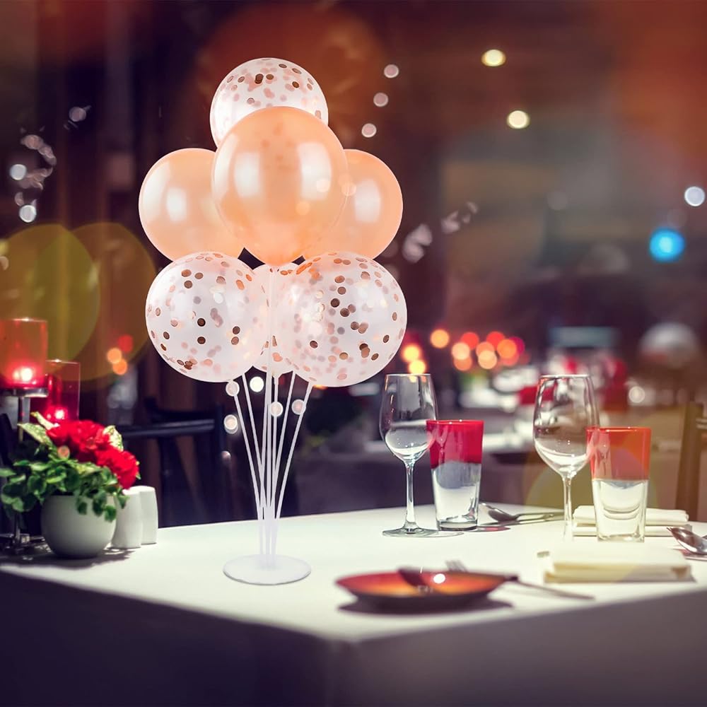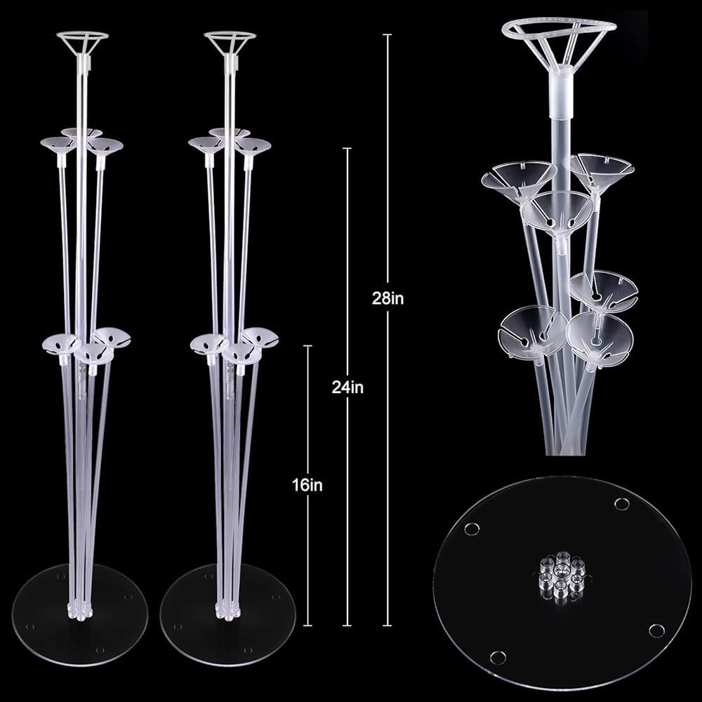 مجموعة حامل بالون تينابليس مكونة من مجموعتين من حامل بالونات سطح المكتب الشفاف مع 7 عصي بالون، 7 أكواب بالون وقاعدة بالون واحدة لأعياد الميلاد | حفلات الزفاف، العطلات، زينة الذكرى السنوية