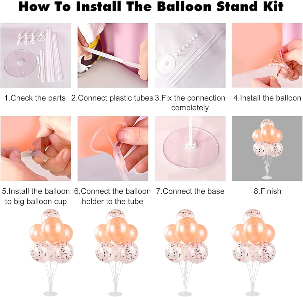 تتضمن العبوة - مجموعتين من حوامل البالونات، تتضمن 11 عصيًا، و7 أكواب، و4 مفاصل اتحاد وقاعدة واحدة لكل مجموعة. (لا يشتمل على البالونات)