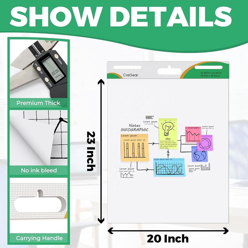 BLEEDPROOF LARGE EASEL PAD PAPERS: Our flip chart paper is thick so you don't have to worry about ink bleeding through to keep great ideas on the page