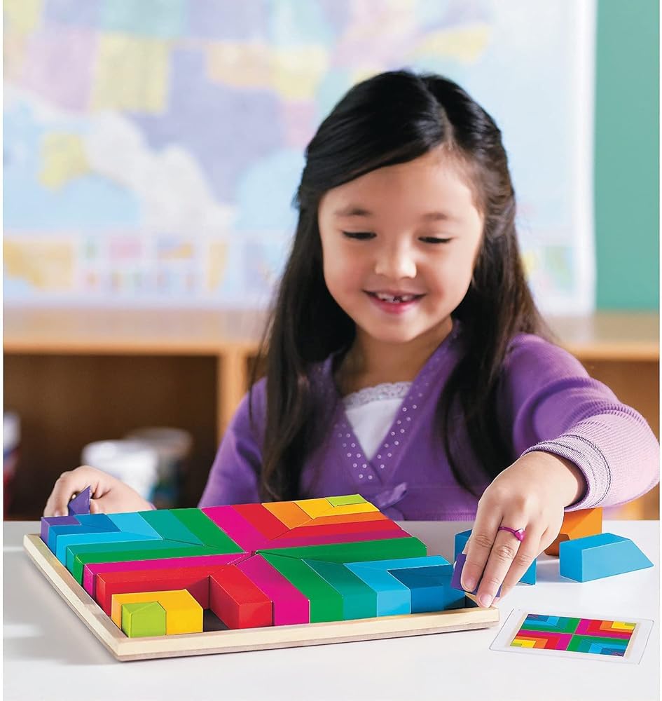 حل المشكلات - يصبح حل المشكلات عملاً فنياً مجزياً مع نمط اللعب: اللون حسب التصميم! استخدم هذه المكعبات ذات الألوان الزاهية بأشكال مختلفة وبطاقات الأنماط لتقديم مفاهيم رياضية مهمة مثل الفرز والمطابقة والتماثل والتطابق والكسور.