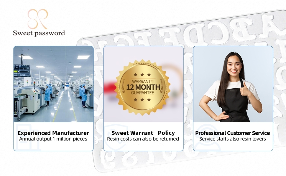 100% Satisfaction Guarantee: The motivation of Sweet Password is to make more creative products and provide more reference ideas for DIY craft lovers. Please don't hesitate to share your finished work with us to inspire other resin lovers. If there is any problem with our silicone mold, please feel free to contact us anytime to get a satisfying answer within 24 hours. Sweet password strives to provide you with 100% satisfaction.