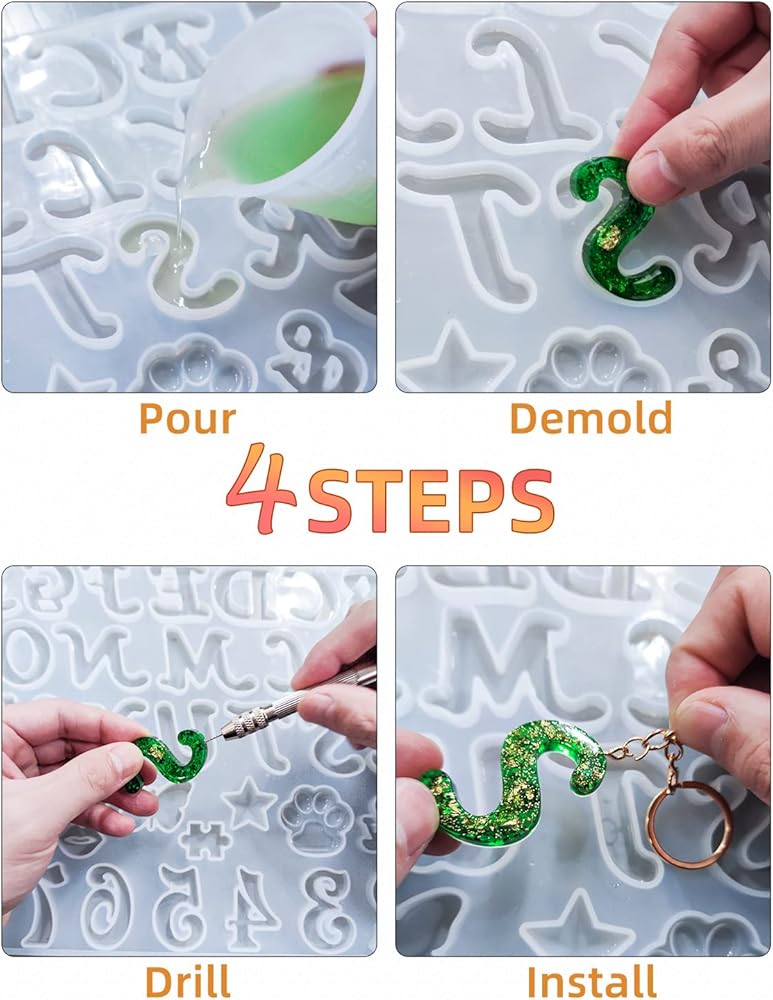 Multiple Ways to Play: With 46 patterns(26 letters, 10 numbers and 10 symbols), there's so much fun for resin-lovers to DIY favourite keychain charms, Bag/purse pendants, furniture Ornaments and special gifts. *Each letter needs 0.2oz of resin approx