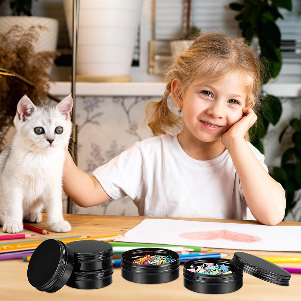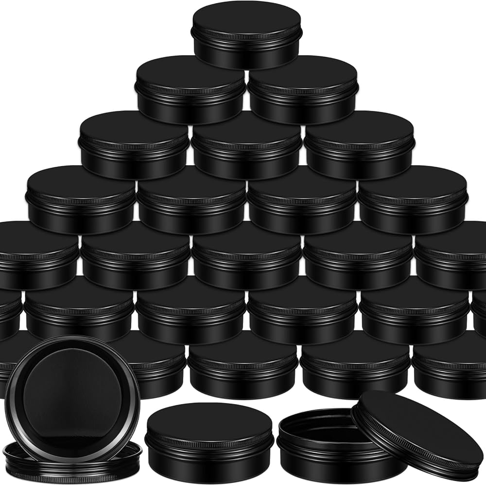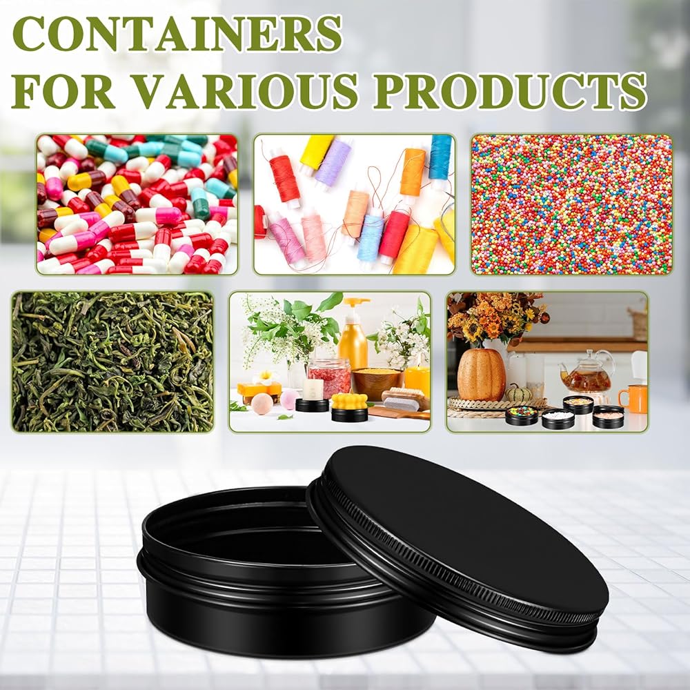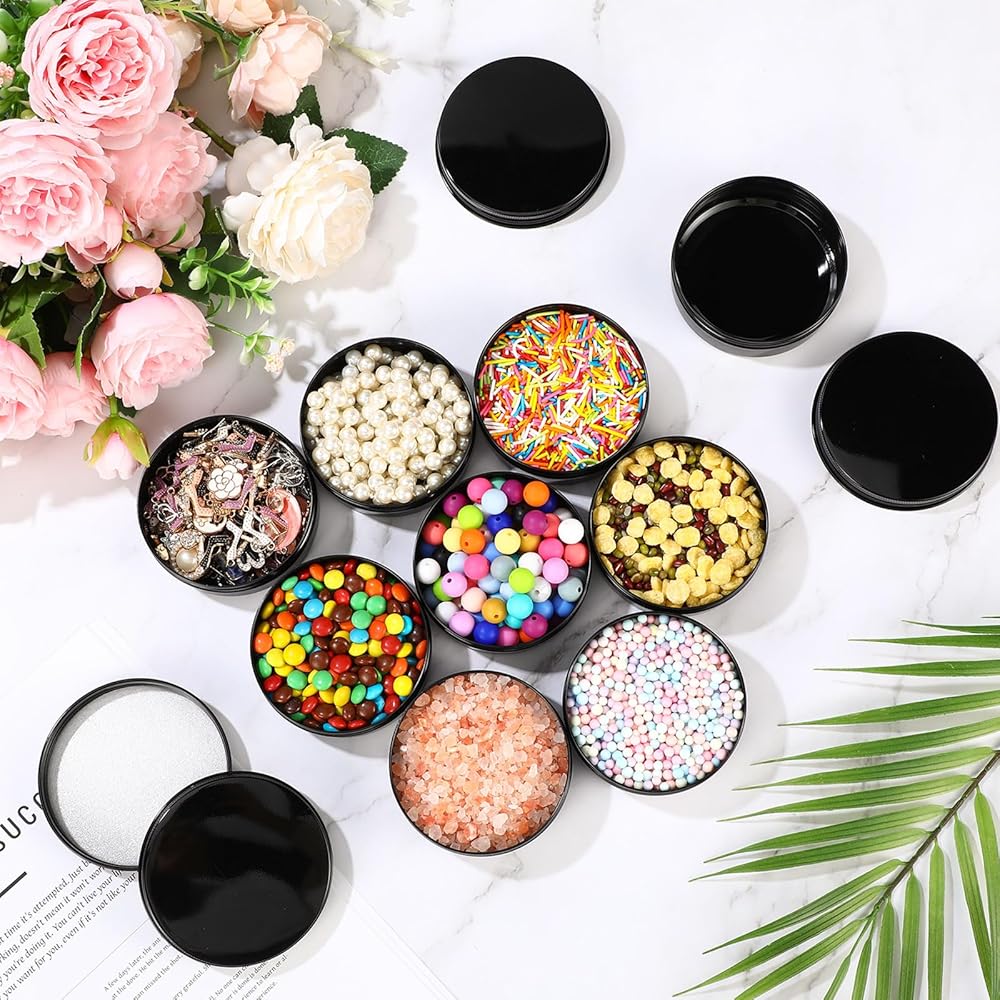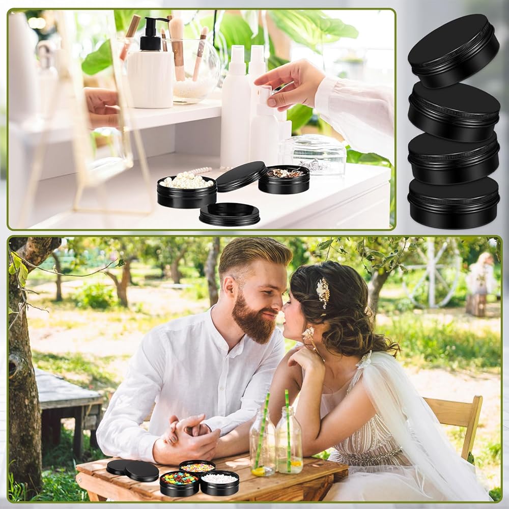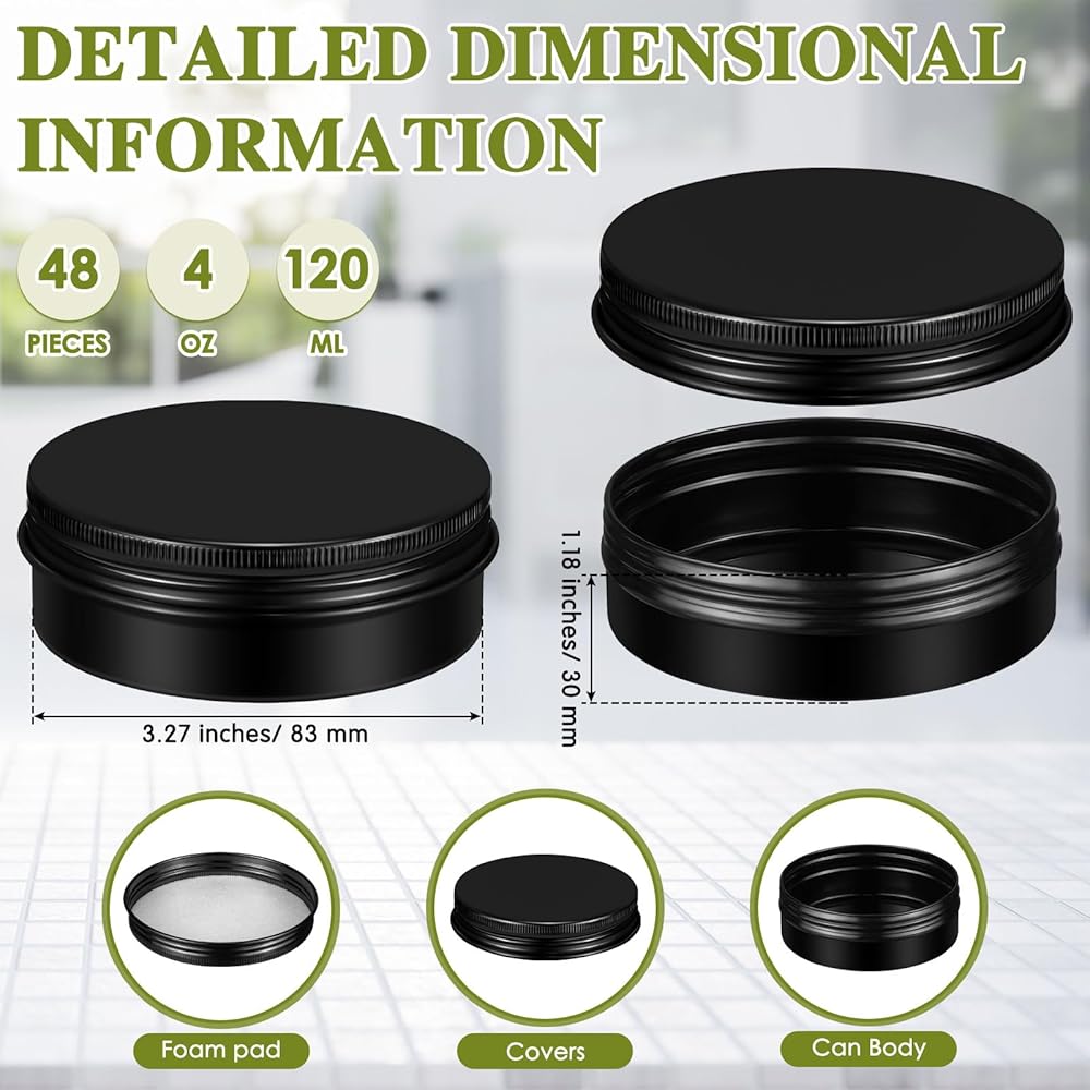 48 قطعة من علب الألومنيوم المستديرة من بيلوبي بوزن 118 مل مع أغطية لولبية، علب بلسم الشفاه المعدنية الفارغة لتخزين عبوات القصدير لتوابل الحلوى والمجوهرات ومستلزمات السفر (أسود)