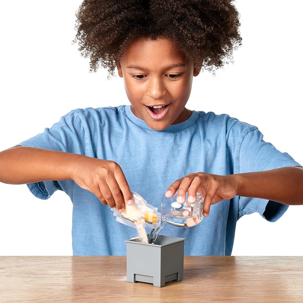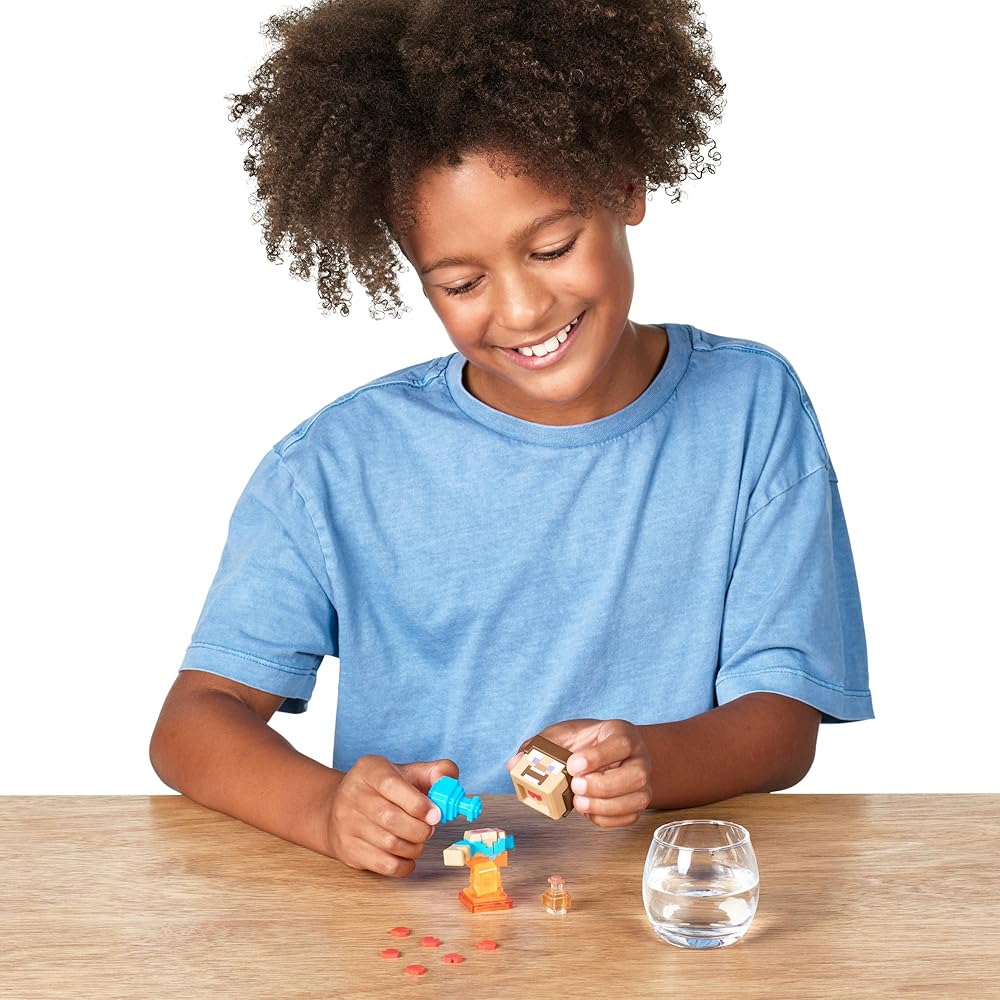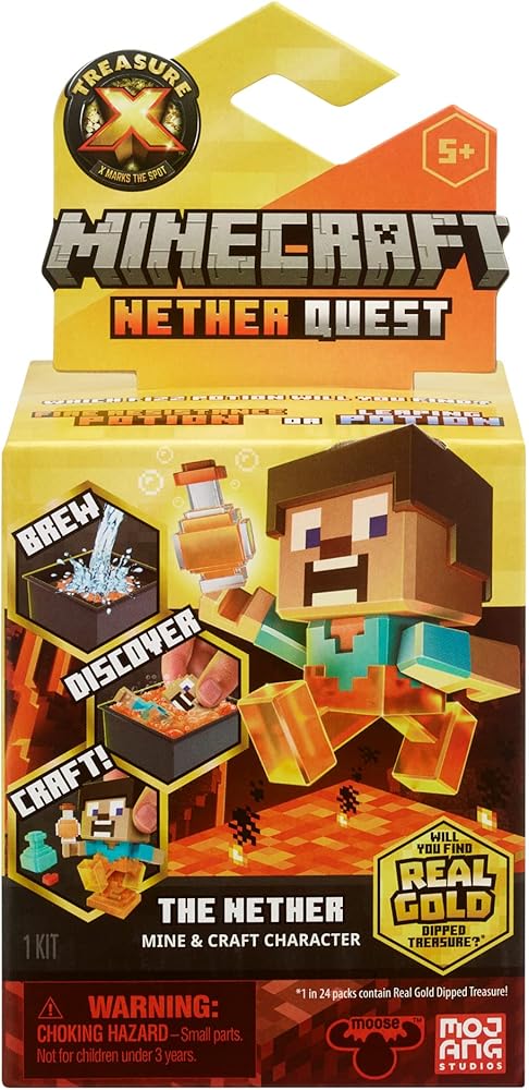 ادخل إلى عالم ماين كرافت نيذر كويست! تحتوي مجموعة تريجر اكس ماينكرافت نيذر كويست على 10 مستويات من المغامرة وتوفر للأطفال القدرة على تحضير واكتشاف وصياغة شخصيات ماين كرافت المفضلة لديهم