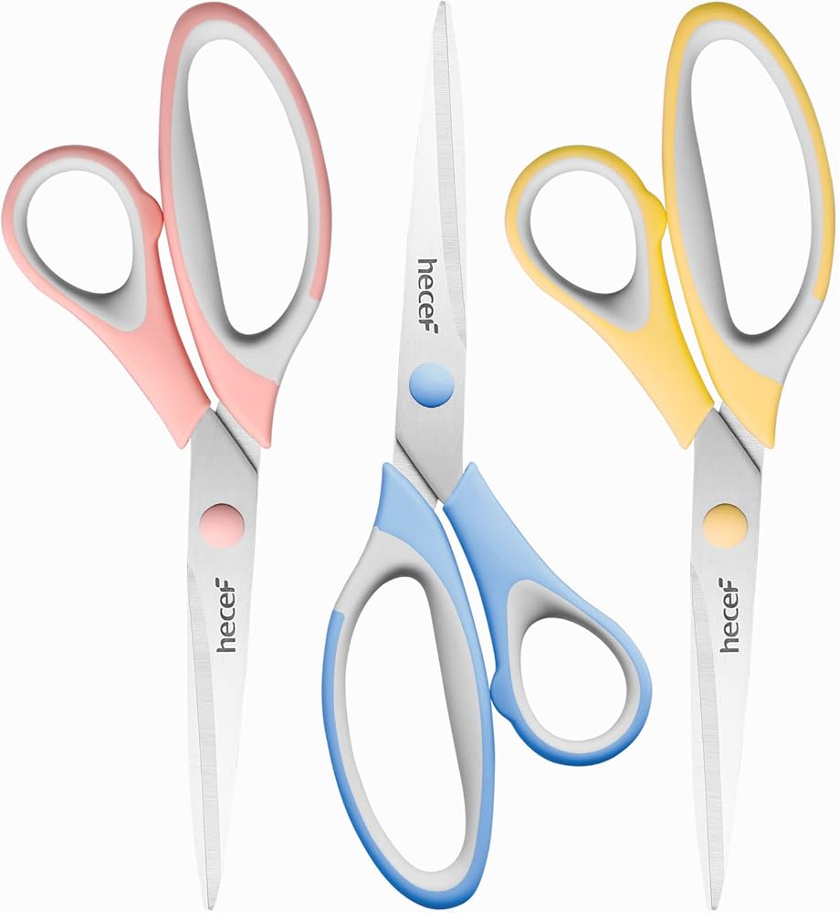 هيسايف مجموعة مقصات متعددة الاغراض مقاس 8 انش مكونة من 3 قطع، مقصات حادة ومتينة بمقابض ناعمة للمكتب والمدرسة والمنزل والحرف الفنية ومستلزمات الحرف اليدوية