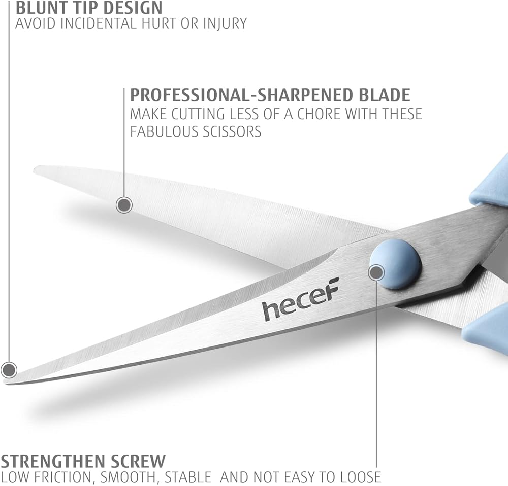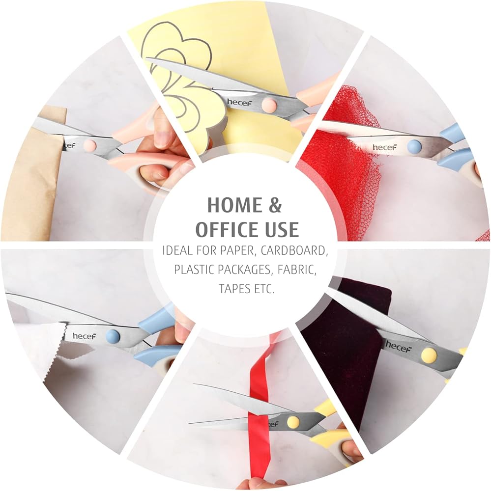 ✔ مجموعة مقصات منزلية عملية: هذا المقص متعدد الأغراض رائع لقص الخيش والورق والصور والورق المقوى والخيوط والقماش وما إلى ذلك. يمكنك أيضًا استخدامها كمقص منزلي ومقص مكتب ومقص مطبخ ومقص قماش ومقص مدرسي ومقص زهور ومقص تدريب وما إلى ذلك.