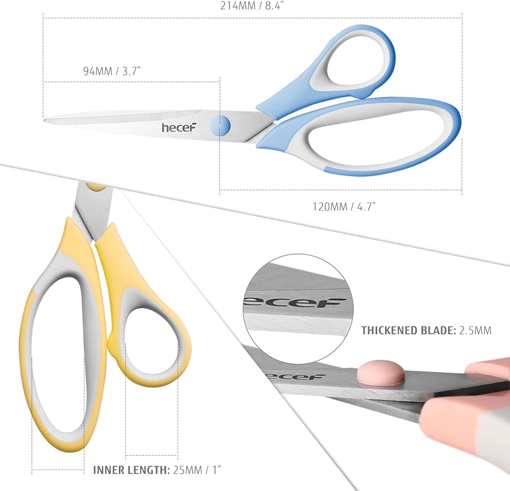 ✔ مجموعة مقصات ملونة من 3: تم تصميم هذه المقصات الرائعة بثلاثة ألوان أنيقة مع مقابض مطابقة: أزرق/رمادي، زهري/رمادي، أصفر/رمادي، والتي تميز الوظائف المختلفة لك. بالإضافة إلى ذلك، فإن المقص بطول معقول يبلغ 21.5 سم (8 انش).