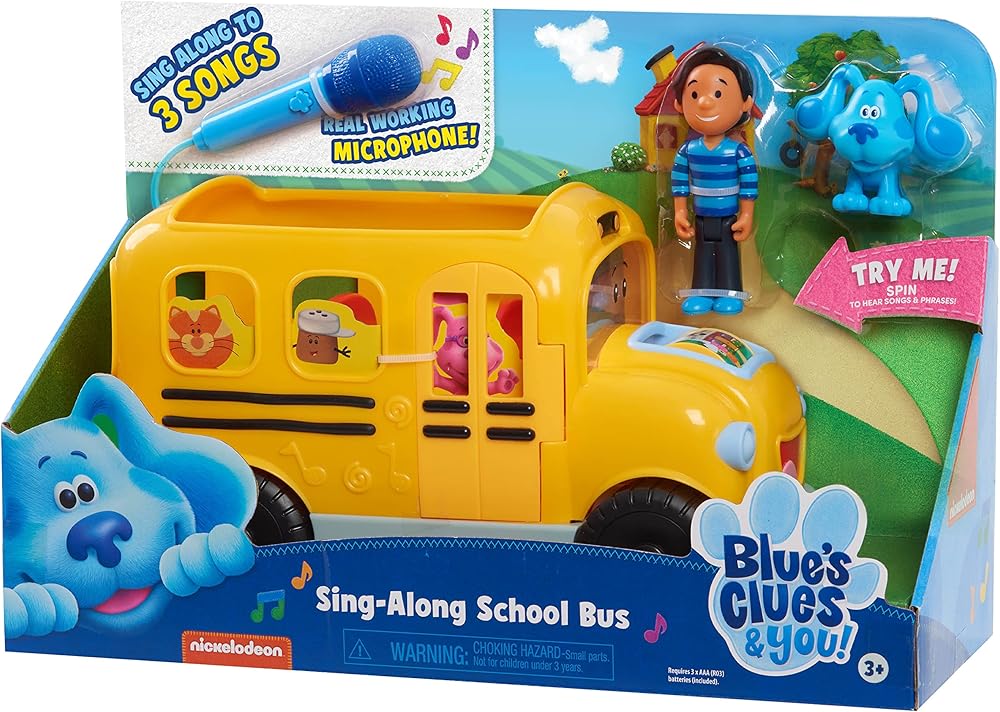 تسلق على متن كلاب بلو وي! حافلة مدرسية سينغ-الونج لرحلة موسيقية مع شخصيات جوش وبلو التي تبدو كما لو في عرض نيكلديون الشهير في مرحلة ما قبل المدرسة، بلوز كلاز اند يو! هذه الحافلة المدرسية الموسيقية تسير على كل التوقف الصحيح! يمكن للأطفال اختيار أغنية أثناء سفرهم إلى واحدة من ثلاث وجهات: المدرسة أو المزرعة أو منزل ماجينتا.