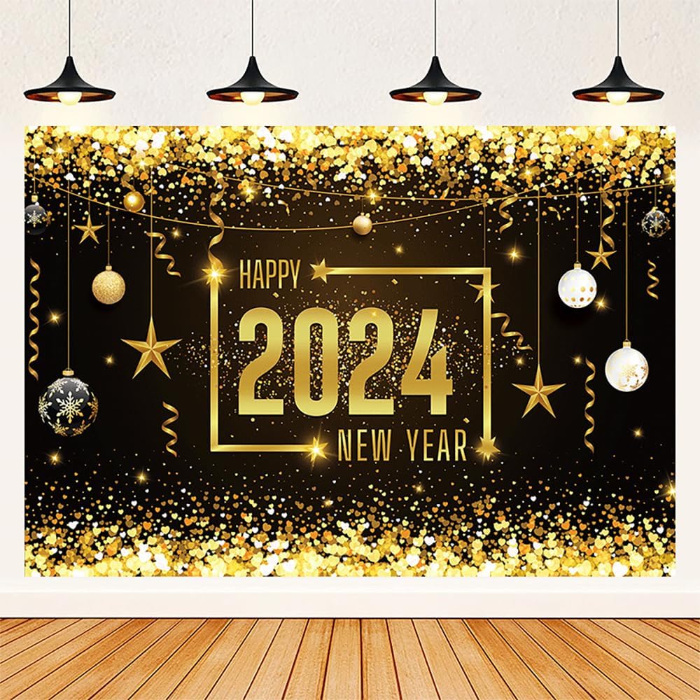 عالية الجودة ومتينة: هذه البالونات مصنوعة من مواد اللاتكس عالية الجودة والرقائق المعدنية، آمنة ومتينة، يمكنك استخدامها بثقة. خلفية العام الجديد السعيد مصنوعة من نسيج البوليستر، والنمط واضح وتأثير جيد.