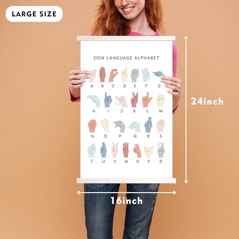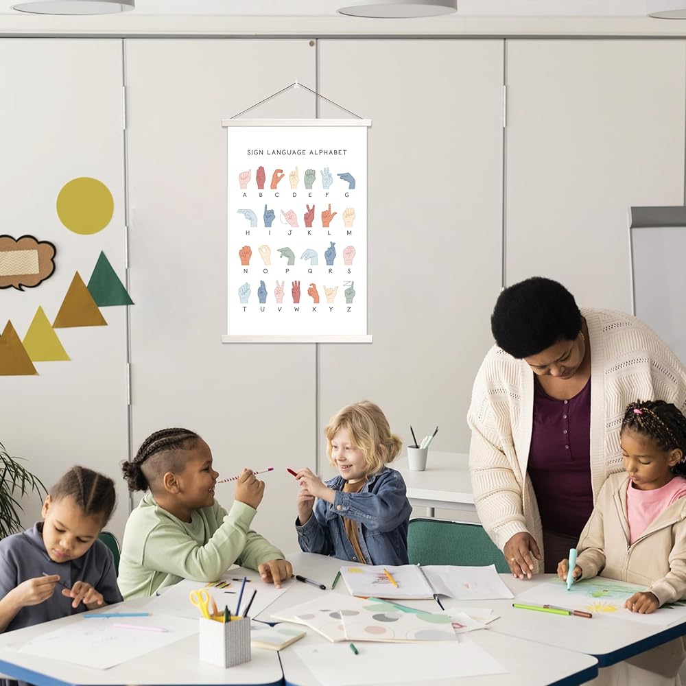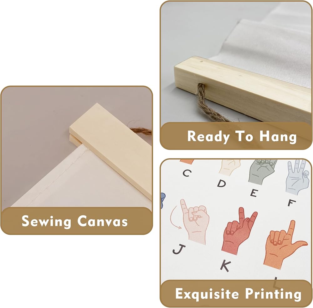 【مادة عالية الجودة】: مصنوع من القماش والخشب الفاخر، يوفر ملصق لغة الإشارة الخاص بنا مزيجًا من المرونة والمتانة. تتم طباعة الأنماط على قماش نظيف، مما يخلق عرضًا واضحًا ونابضًا بالحياة وممتعًا من الناحية الجمالية.
