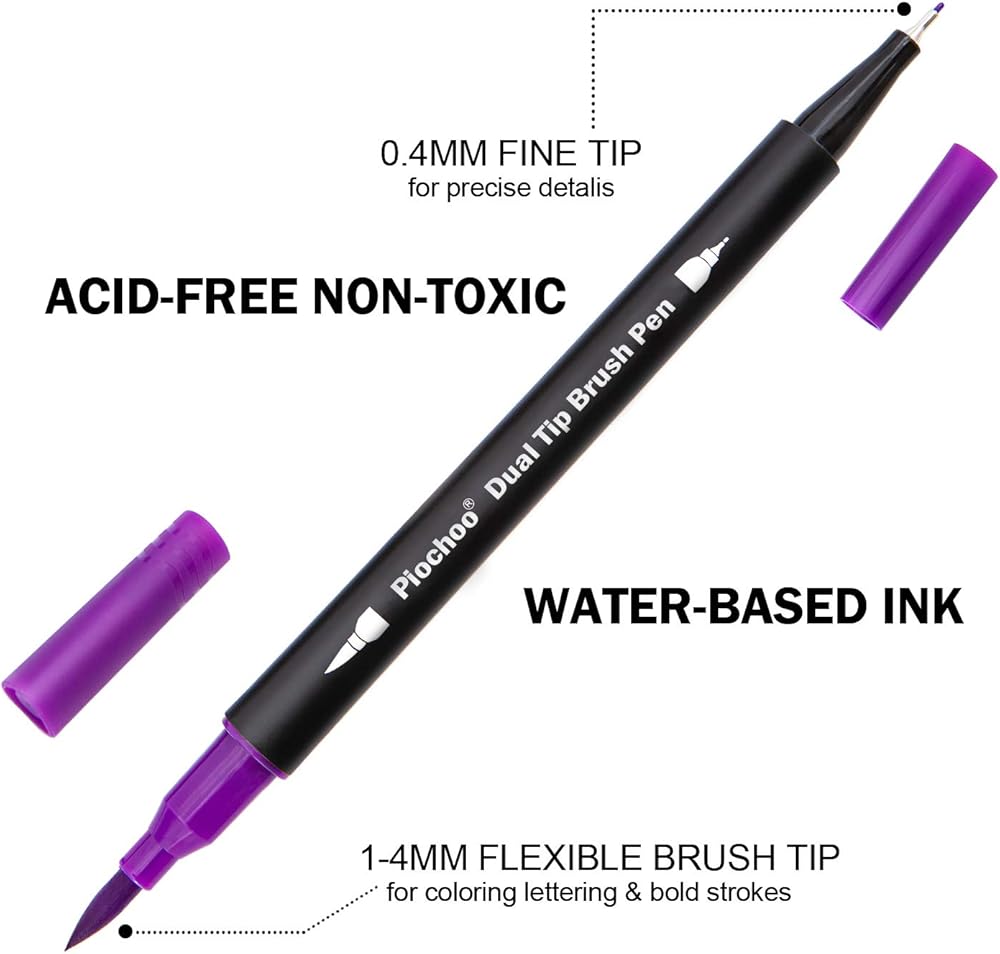 • تصميم برأس مزدوج: تتميز أقلام التحديد الملونة ذات الرأس المزدوج من بيوتشو برأس فرشاة مرن مما سيجلب المزيد من المرح لأعمالك الفنية. يمكنك إنشاء خط دقيق للغاية بمقدار 0.4 مم، وضربات دقيقة ومتوسطة أو جريئة بتغيير ضغط الفرشاة.