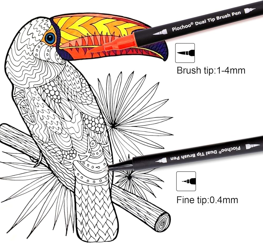 هذا القلم متعدد الاستخدامات ذو الوجهين رائع لكتب تلوين البالغين ودفتر النقوش والمخططات وبطاقات التهنئة والرسائل ودفاتر القصاصات والتلوين والرسم والكتابة والتلوين وما إلى ذلك.