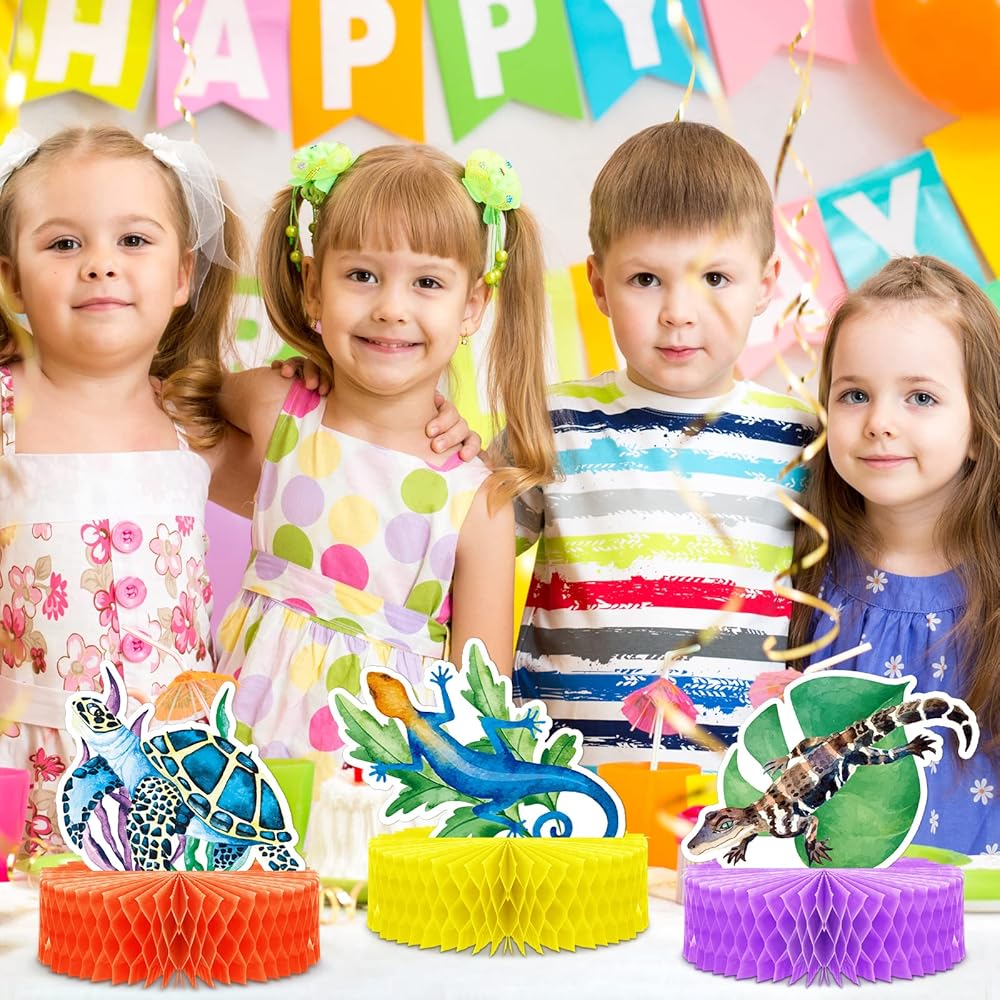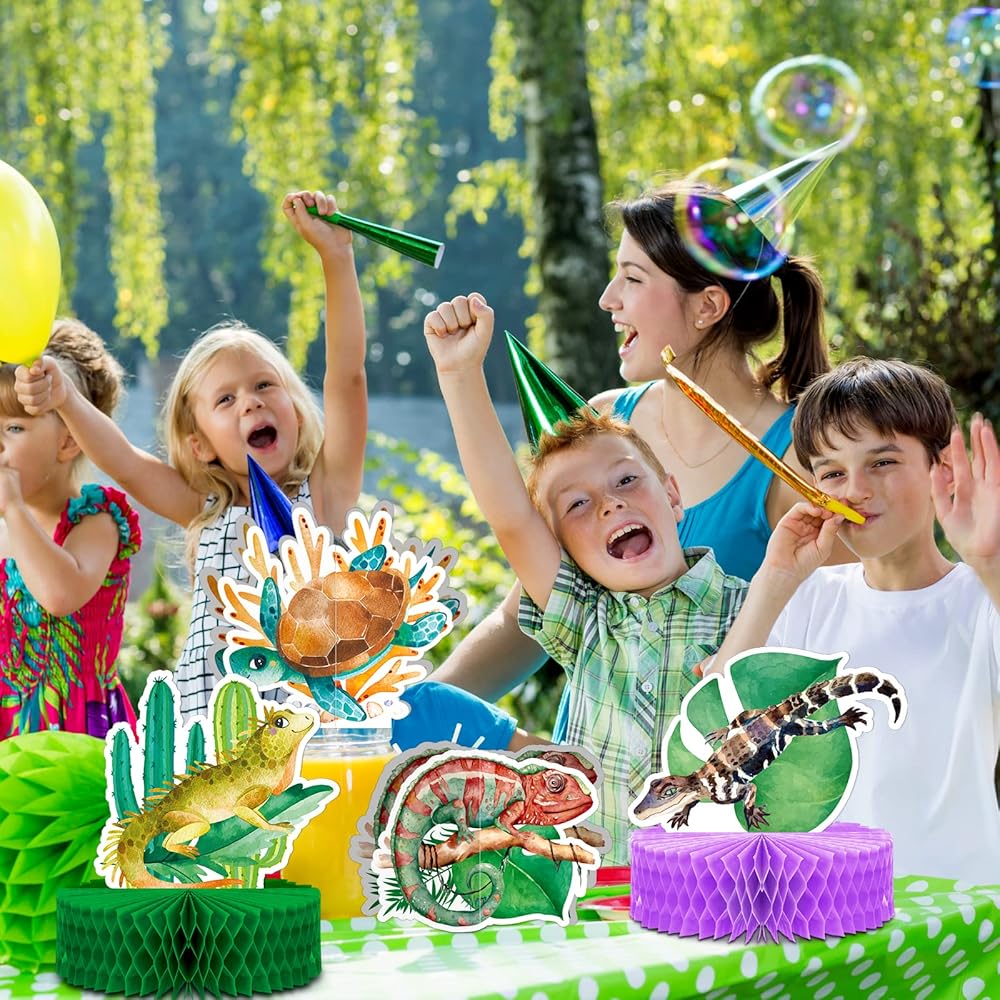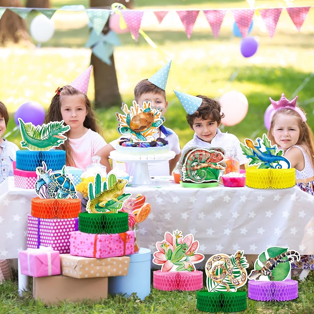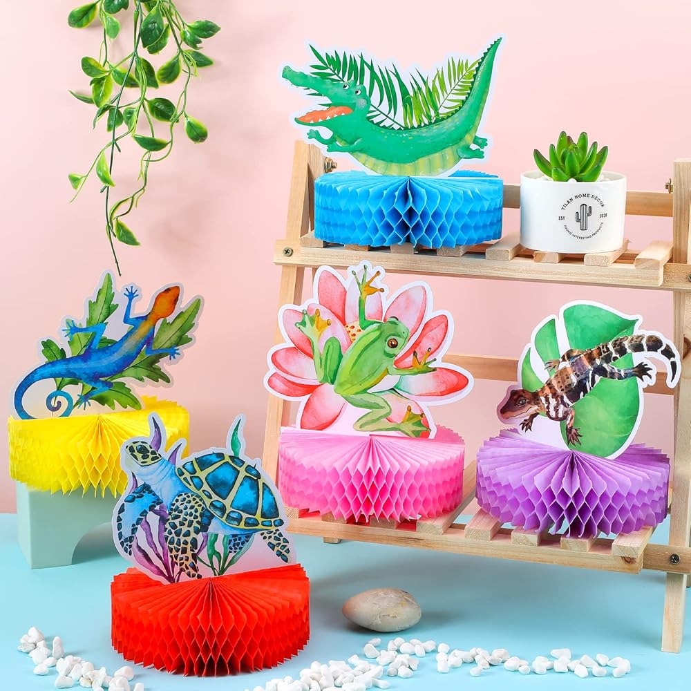 9 قطع مركزية على شكل خلية النحل والزواحف لحفلات اعياد الميلاد وديكورات حفلات الغابة ثلاثية الابعاد على شكل حيوانات المستنقعات على شكل خلية نحل وسحلية لتزيين سفاري وحفلات استقبال المولود وكشك التصوير
