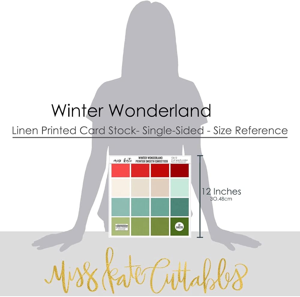 بطاقات ناعمة بطباعة الكتان بوزن 67 رطلاً - بلاد العجائب الشتوية - ليلة عيد الميلاد الباردة في أيام سانتا - 32 ورقة - مخزون بطاقات من جانب واحد - اثنان من 16 لونًا - قلب أبيض - سجل قصاصات يدوي - من تصميم Miss Kate Cuttables