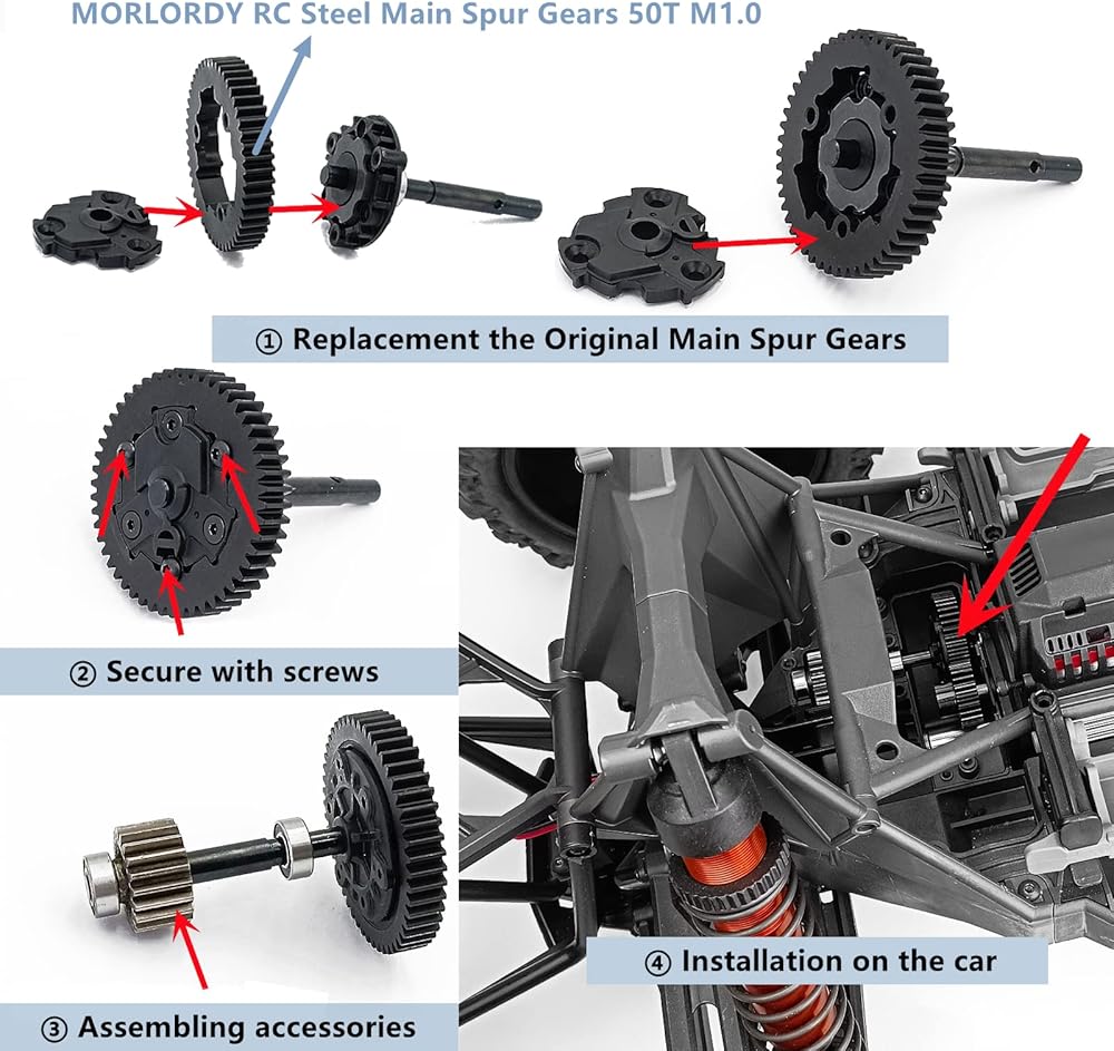 【وظيفة ممتازة Maxx Spur Gear】 يمكن أن يساعد تغيير نسب التروس في تحقيق التوازن بين التسارع والسرعة القصوى في ظل ظروف التشغيل المختلفة لشاحنتك. تتمتع تروس MORLORDY RC الفولاذية بأداء مثالي في ضمان أفضل توازن.