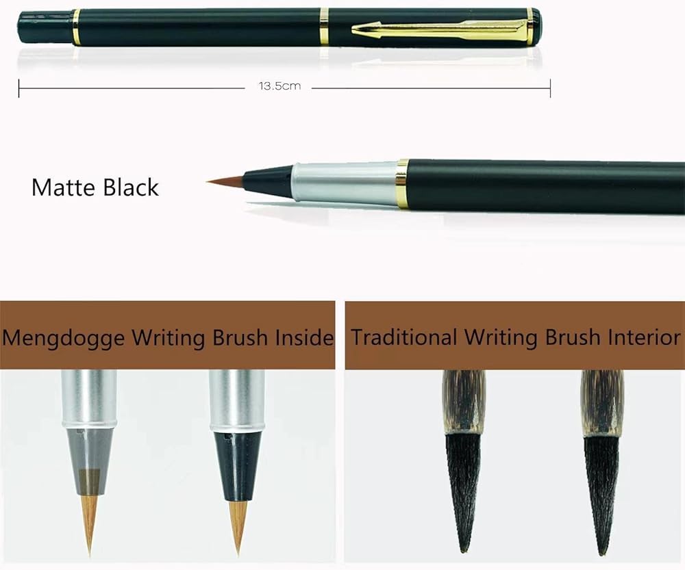 MENGDOGGE Calligraphy Brush Pens Black is the great writing instrument for a smooth and effortless writing experience. It is designed with an innovative, no-leak ink system that prevents ink from spilling out of the pen.