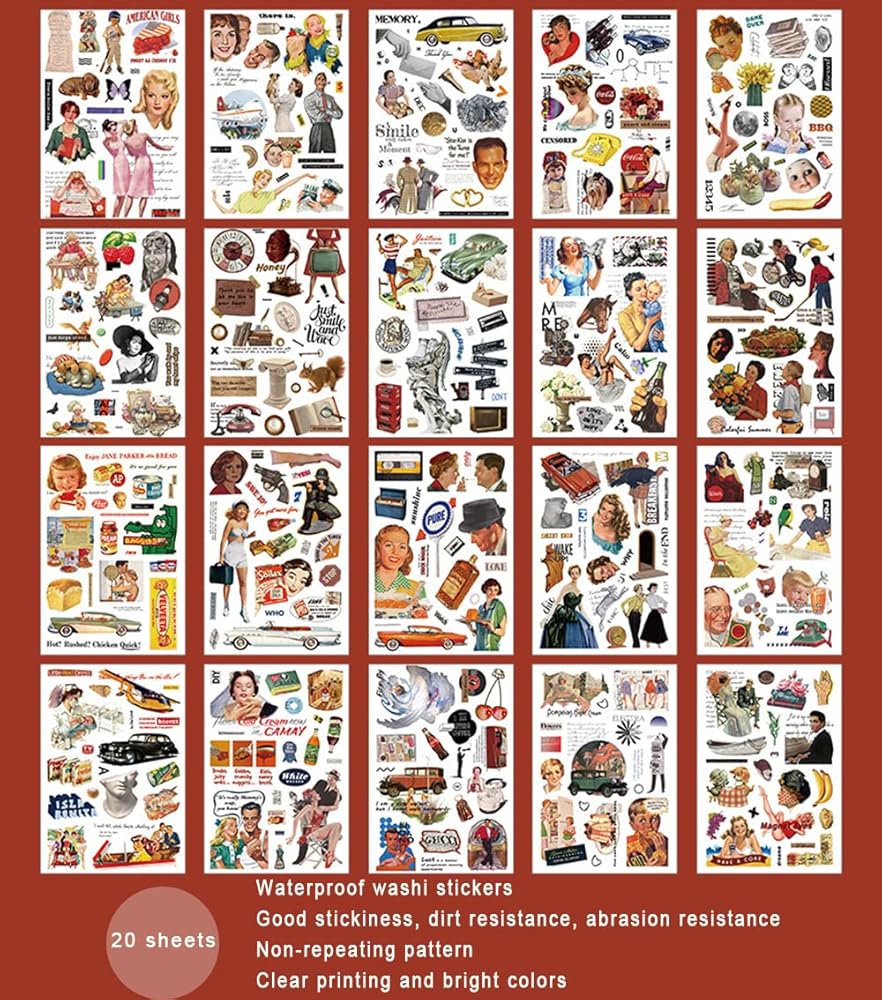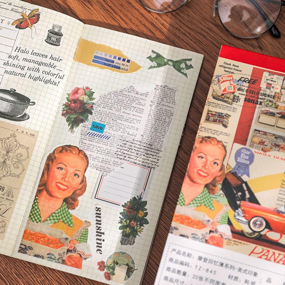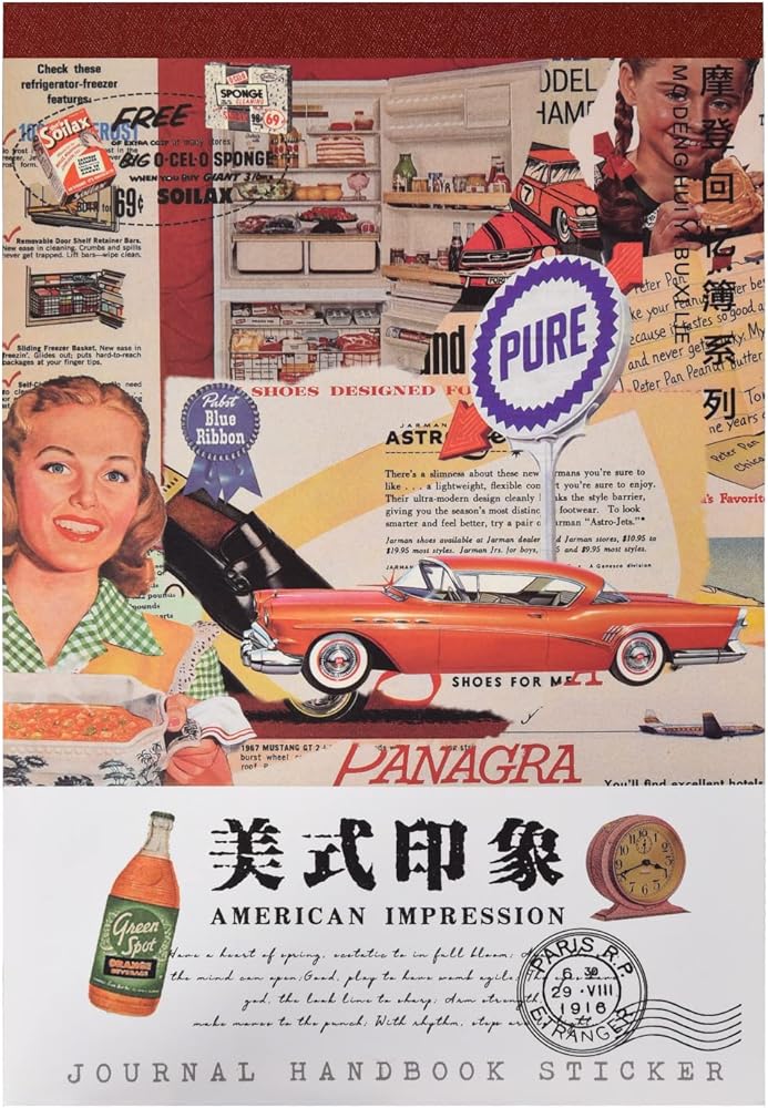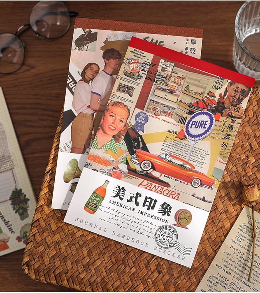 ملصقات كتب القصاصات الجمالية من واشي - مجموعة أدوات دفاتر الملاحظات المكونة من 20 ورقة من أجل سجل القصاصات ومذكرات ومخططات ألبوم دفتر الملاحظات - موضوع الانطباع الأمريكي