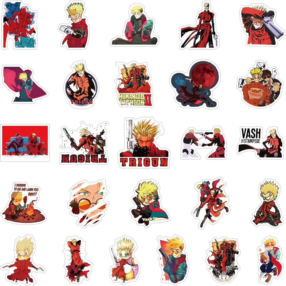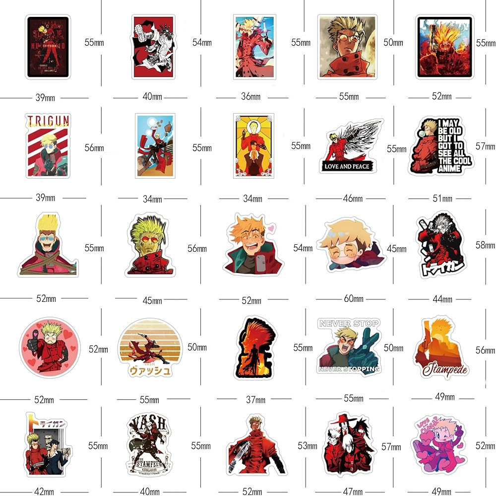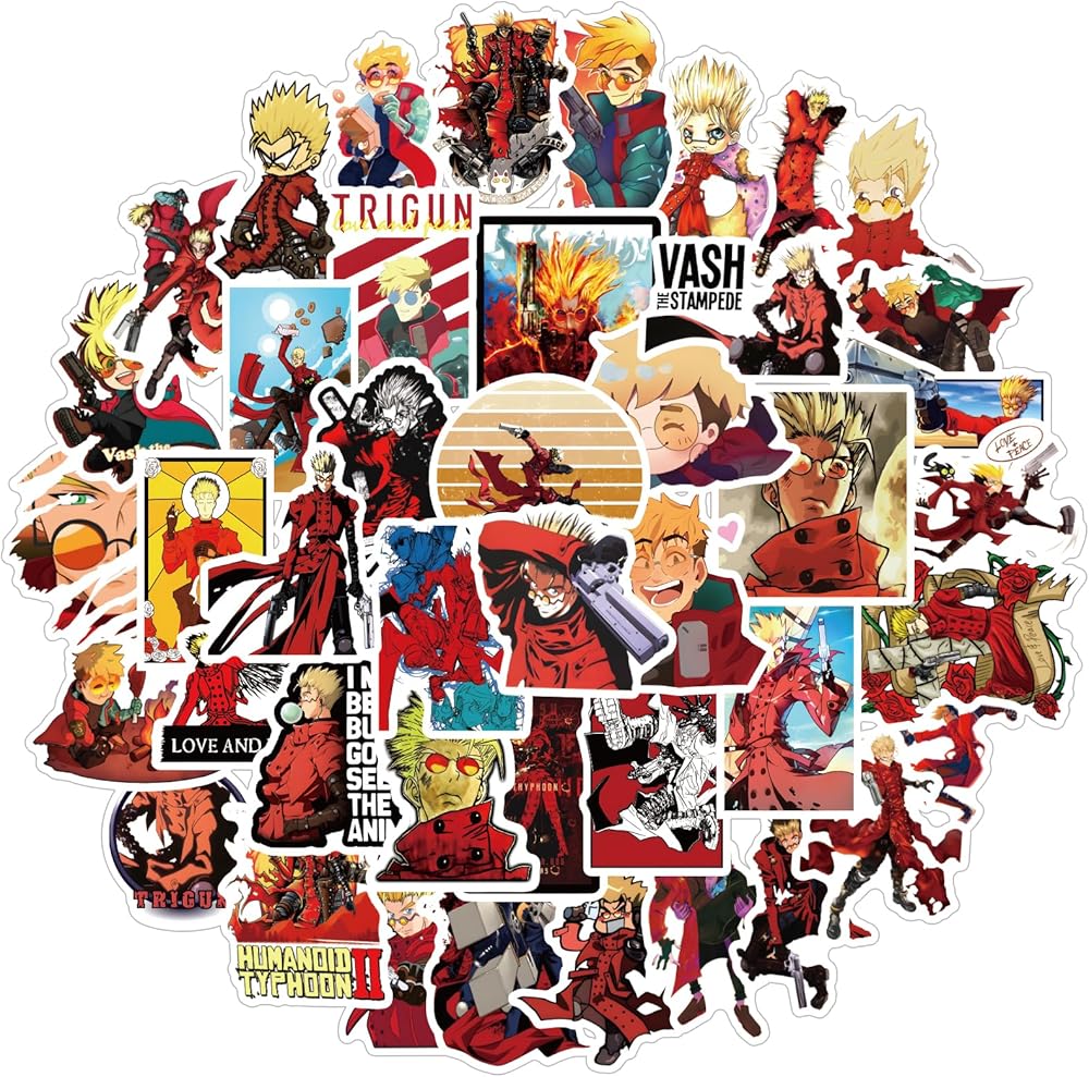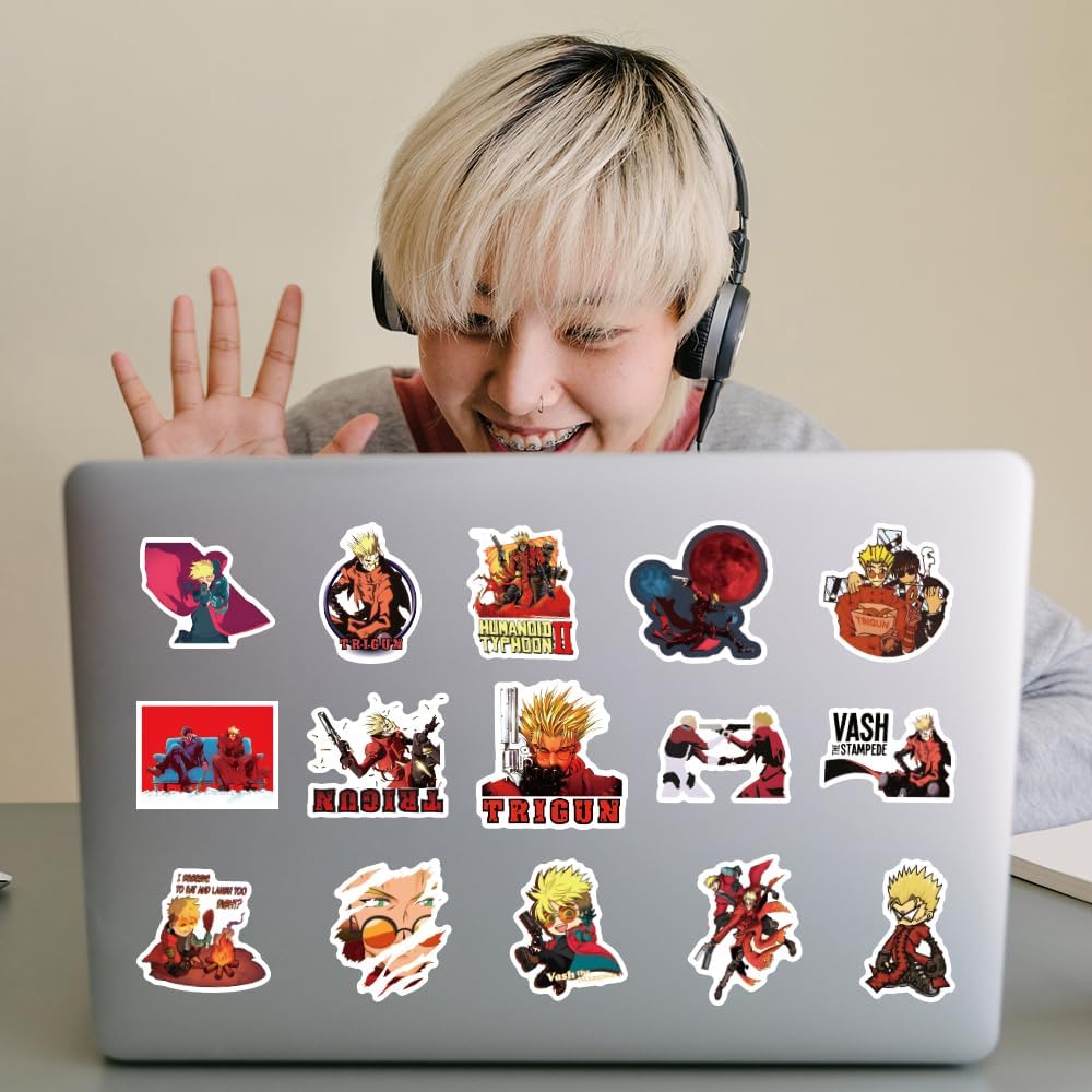 مجموعة 62 قطعة من ملصقات Trigun Anime، ملصقات لاصقة مقاومة للماء من الفينيل الجمالية الكرتونية لزجاجة المياه، الكمبيوتر المحمول، الهاتف، القبعة الصلبة، لوح التزلج، سجل القصاصات، هدايا ممتصة للصدمات للأطفال والمراهقين والبالغين