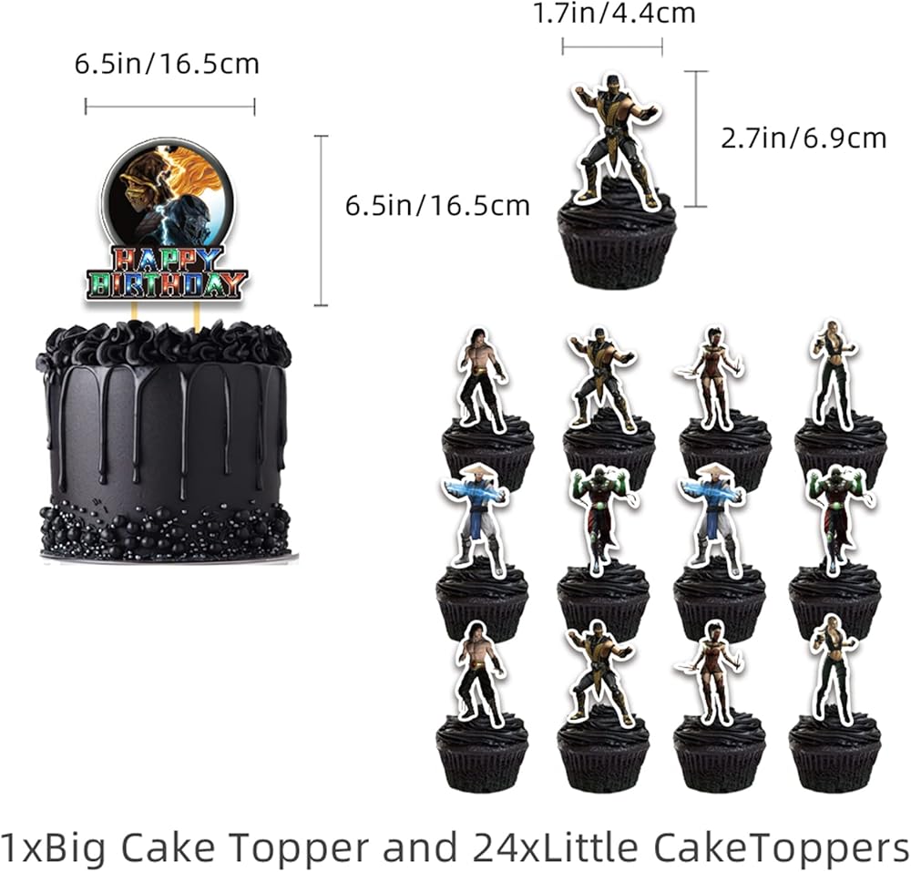 تشمل العبوة: مجموعة لوازم حفلات أعياد الميلاد مورتال كومبات تتضمن 1 لافتة عيد ميلاد سعيد، 16 بالون لاتكس (4 أنماط من 4 لكل منهما)، 1 × كعكة كبيرة الحجم، 24 × أعلى كعكة صغيرة الحجم، 1 × خلفية، كل إكسسوار له عناصر دور كومبات، وهذه الزخرفة ستضيف متعة لحفلتك