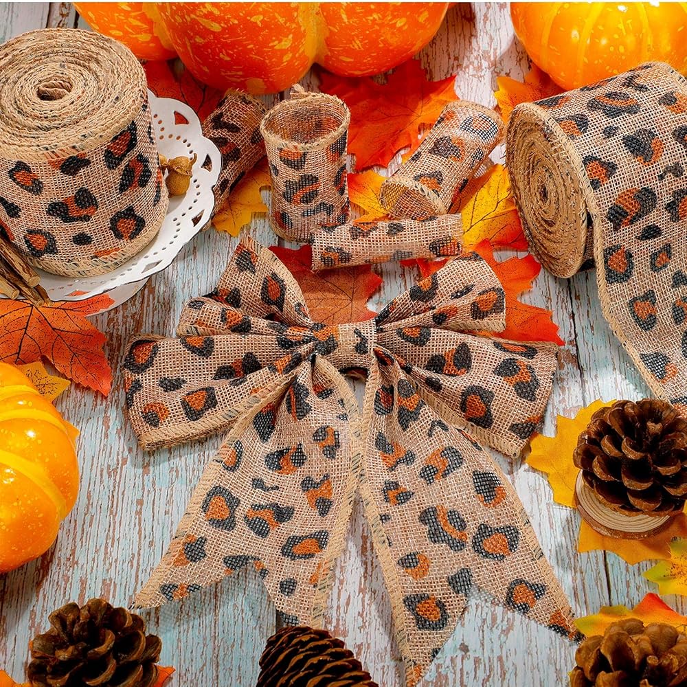 2 لفة من شريط بحافة سلكية من الخيش بنمط جلد الفهد