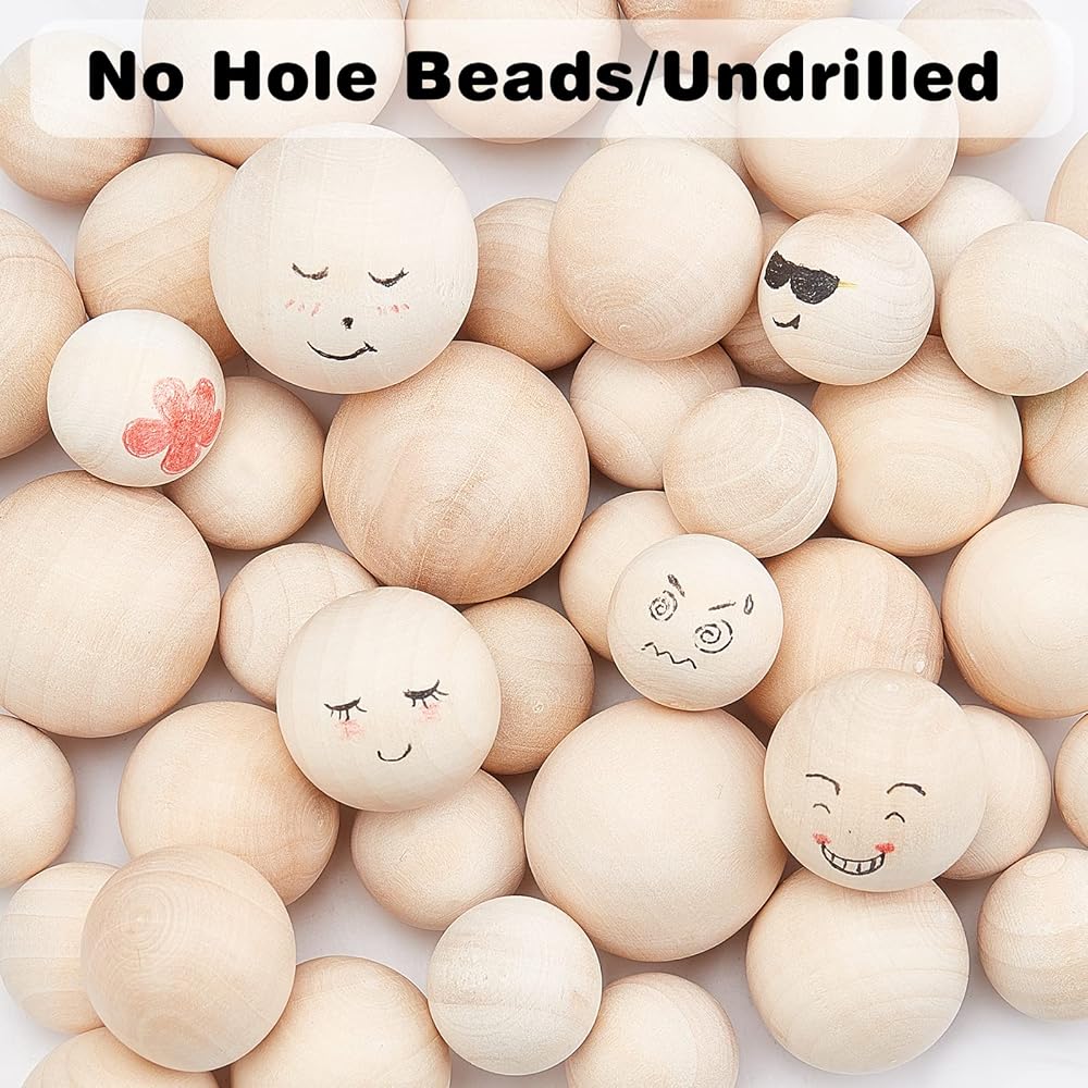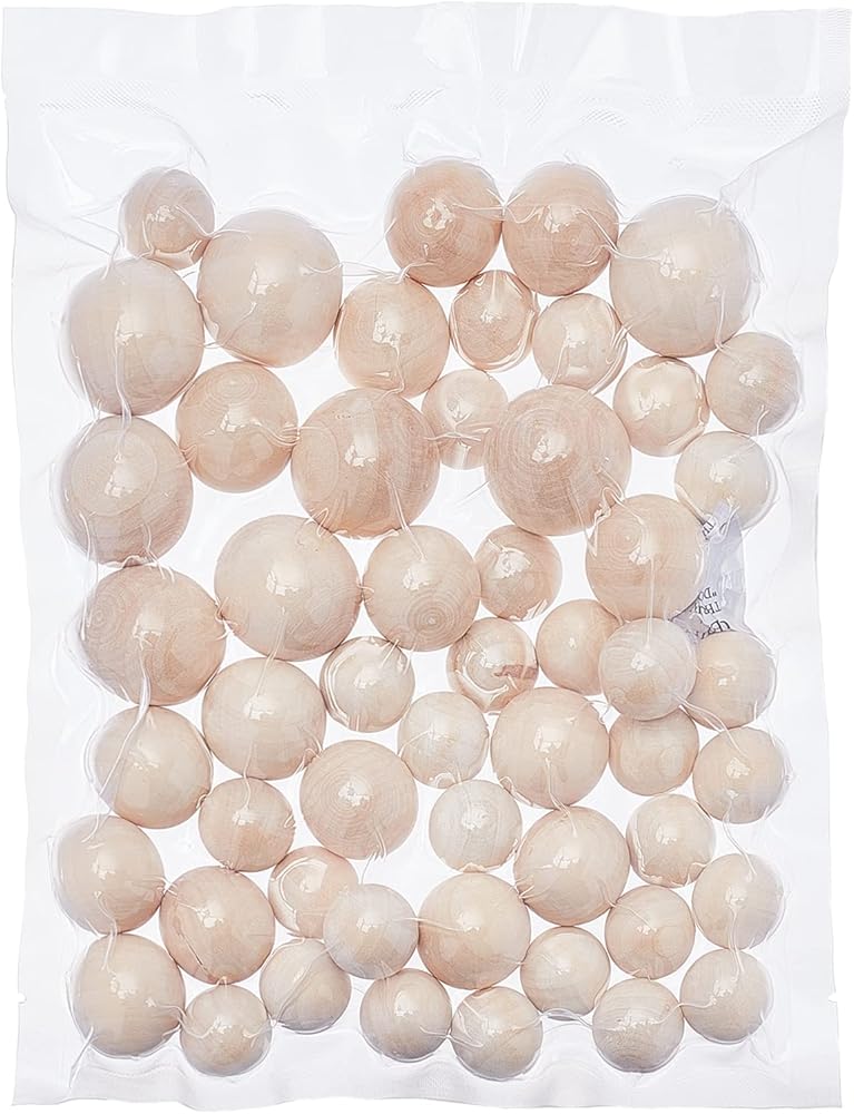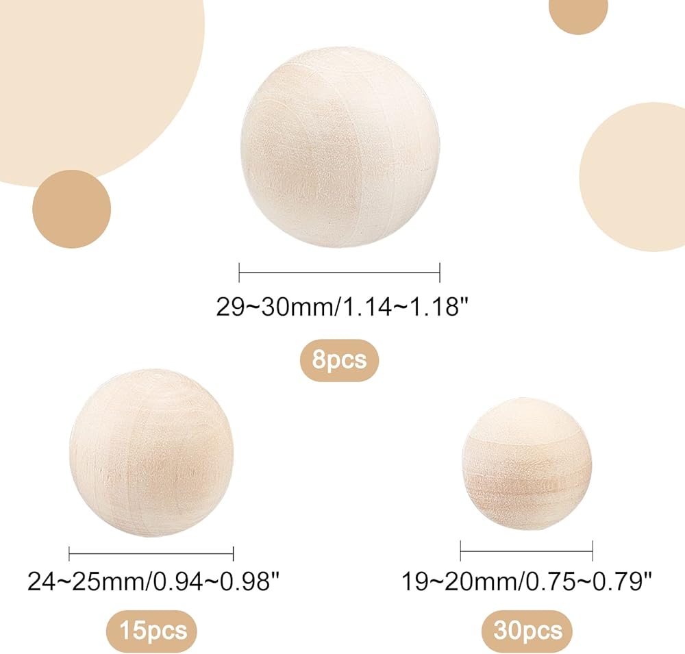3 مقاسات متاحة: تتضمن العبوة 53 قطعة من كرات الخشب الصلب الطبيعي في 3 أحجام - القطر 20 مم (0.8 بوصة) - 30 قطعة، 25 مم (1 بوصة) - 15 قطعة و30 مم (1.2 بوصة) - 8 قطع.