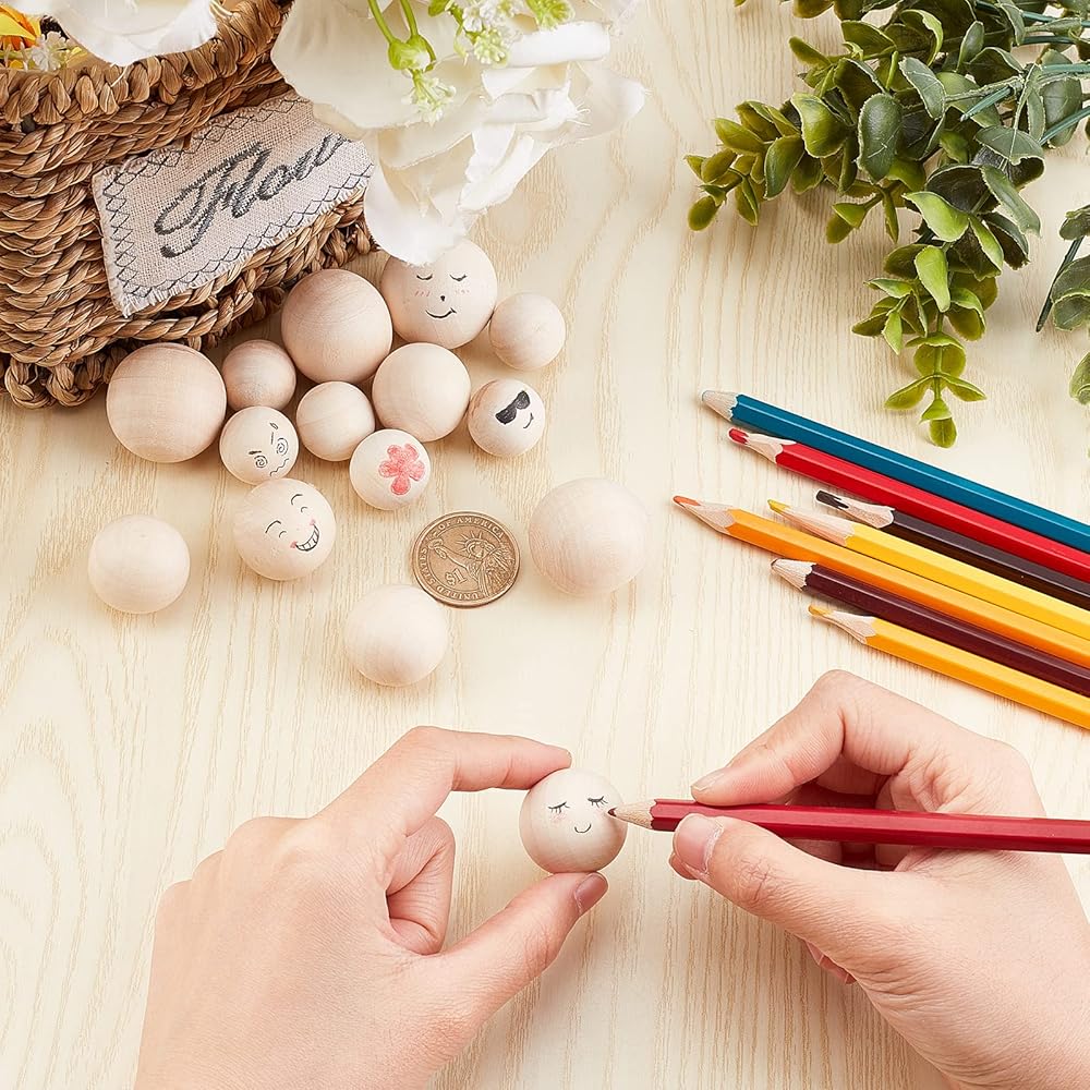 خرزات خشبية مخصصة بنفسك: يمكن طلاء هذه الخرزات الخشبية غير المكتملة أو تلطيخها أو تزيينها حسب رغبتك؛ اصنع الخرز الخشبي الخاص بك للزينة أو الحرف اليدوية.