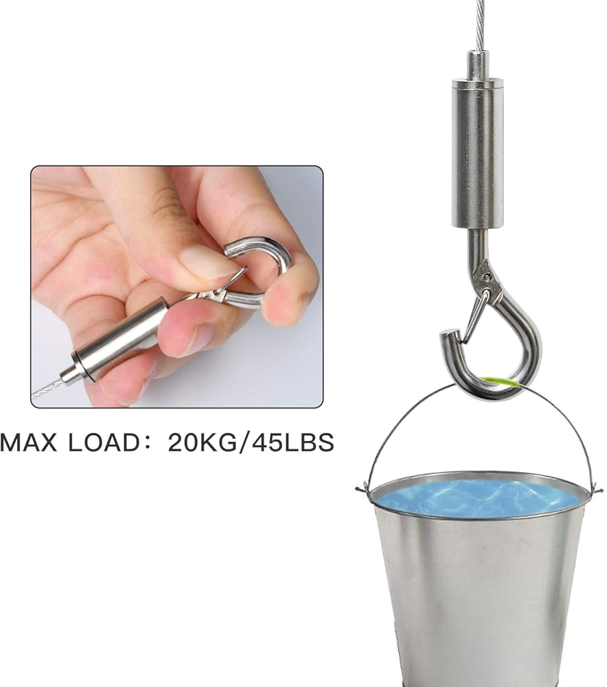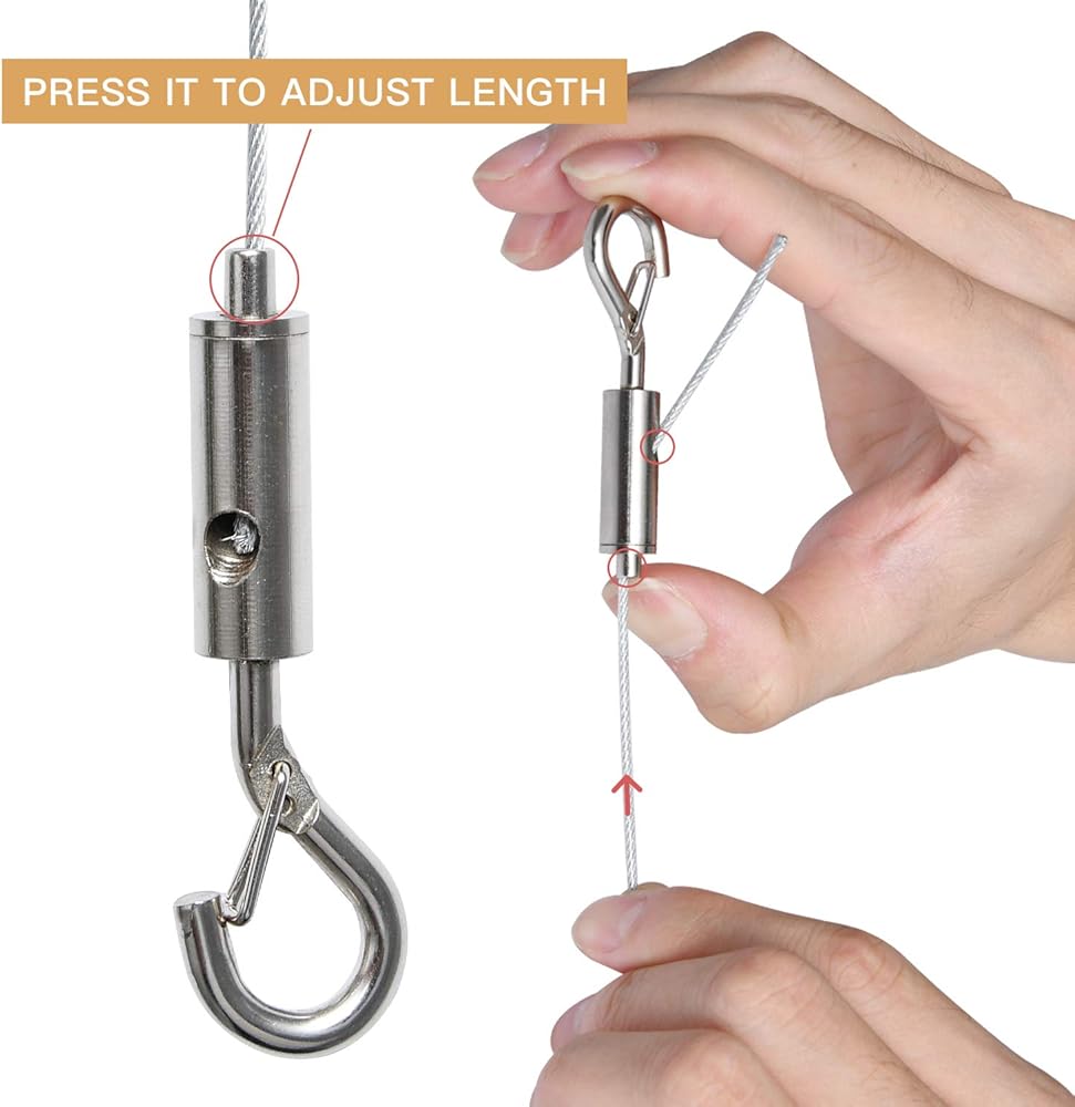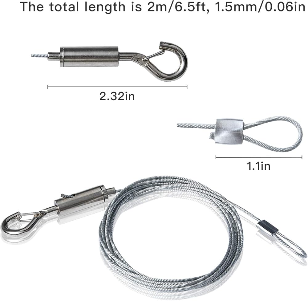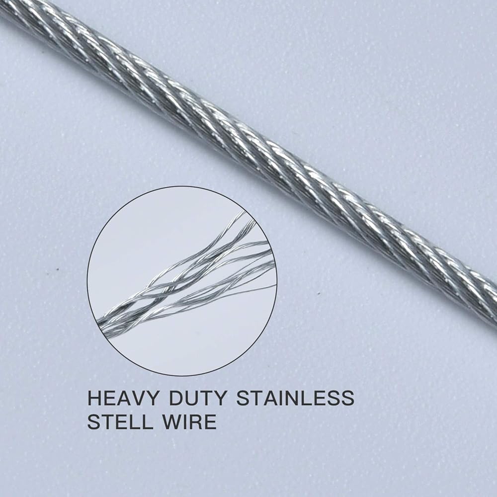 • HEAVY-DUTY MATERIAL: The hanging wire is made of by high-quality 304 stainless steel, nickel-plated iron hook, copper wire clamp and wire eye loop, which is very durable for a long time hanging and not easy to break.