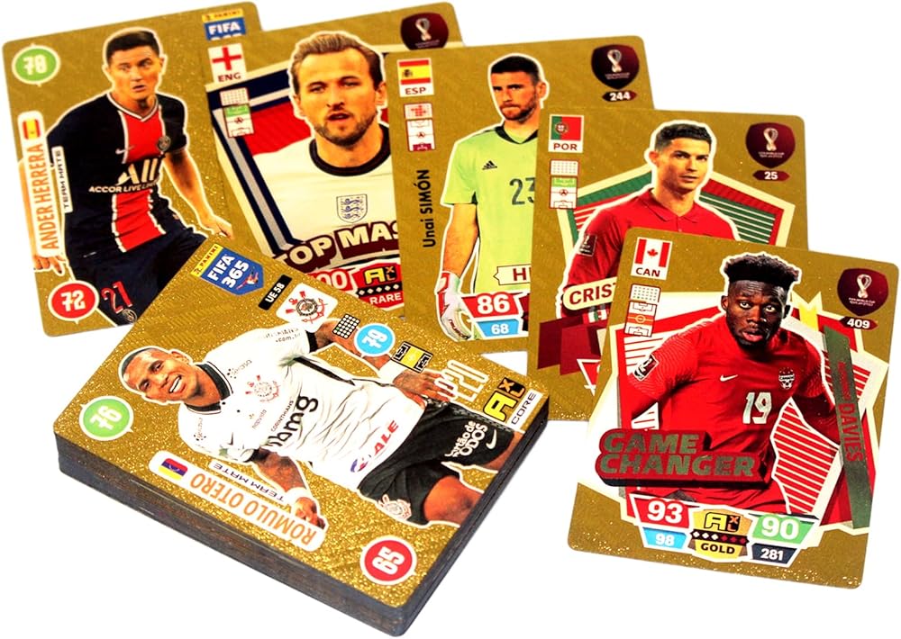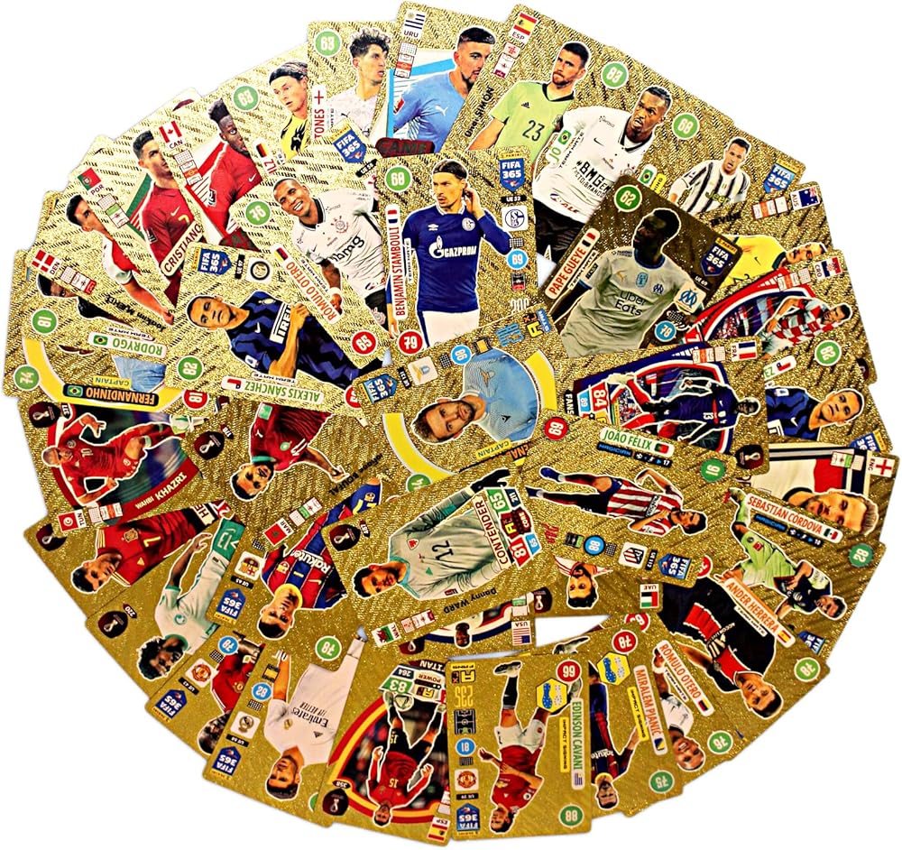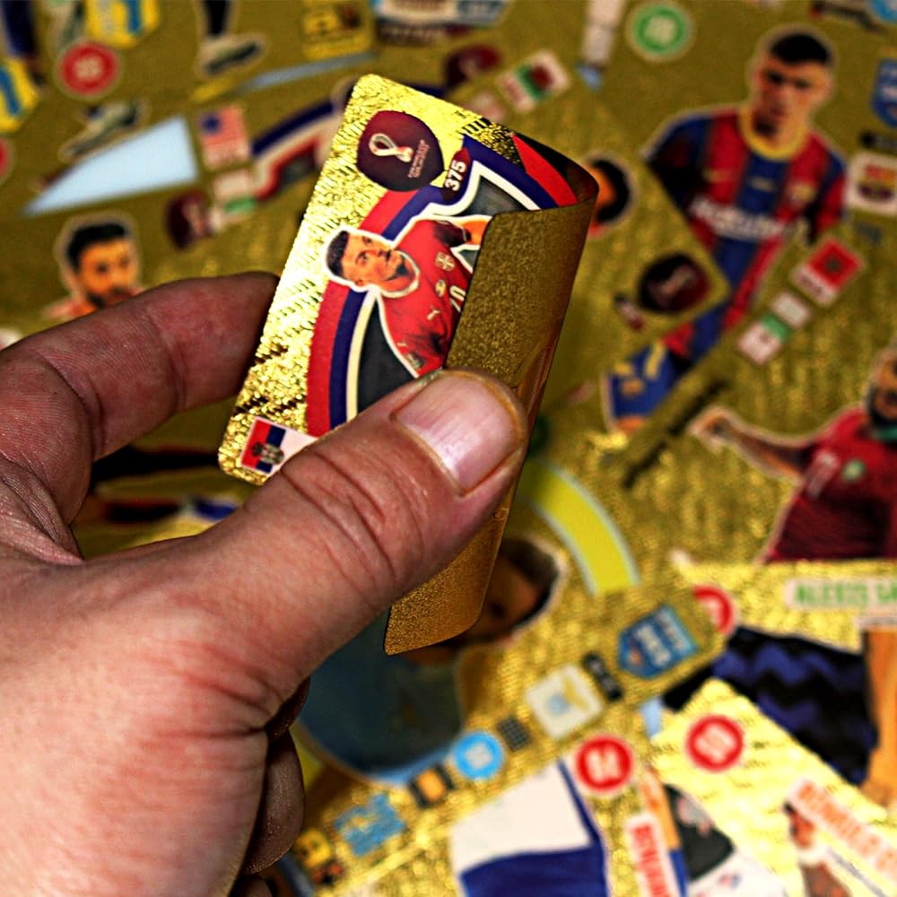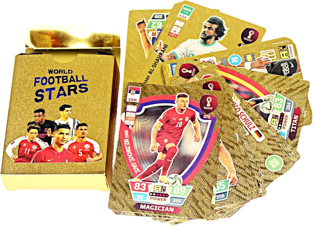 1. 55 بطاقة كرة قدم ذهبية متضمنة في مجموعة جميلة من البطاقات.