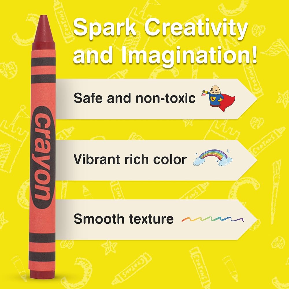 تتيح لك أقلام التلوين الكبيرة تجديد الألوان التي تستخدمها في أغلب الأحيان. 80 قلم تلوين من لون واحد في كل صندوق. 80 لكل صندوق. الطباشير الملون غير سامة. يتوافق مع ASTM D 4236.
