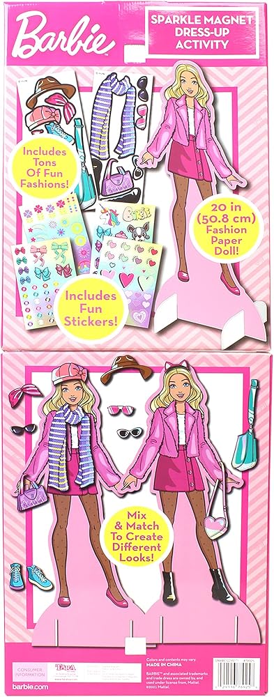 امزج القطع المغناطيسية وطابقها على الدمية الورقية المغناطيسية! يبلغ طول الدمية الورقية 20 انش. أضف ملصقات لمزيد من التفاصيل اللامعة! ابتكري إطلالات مختلفة في كل مرة!
