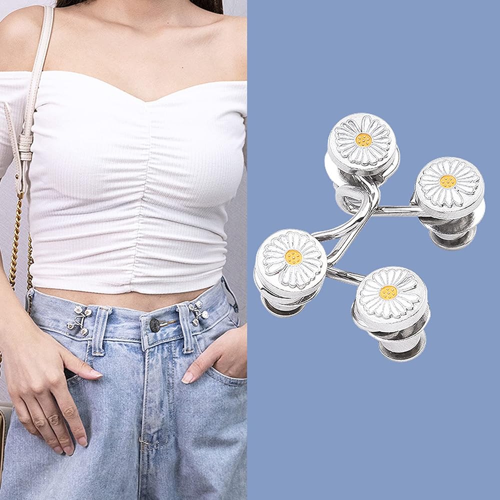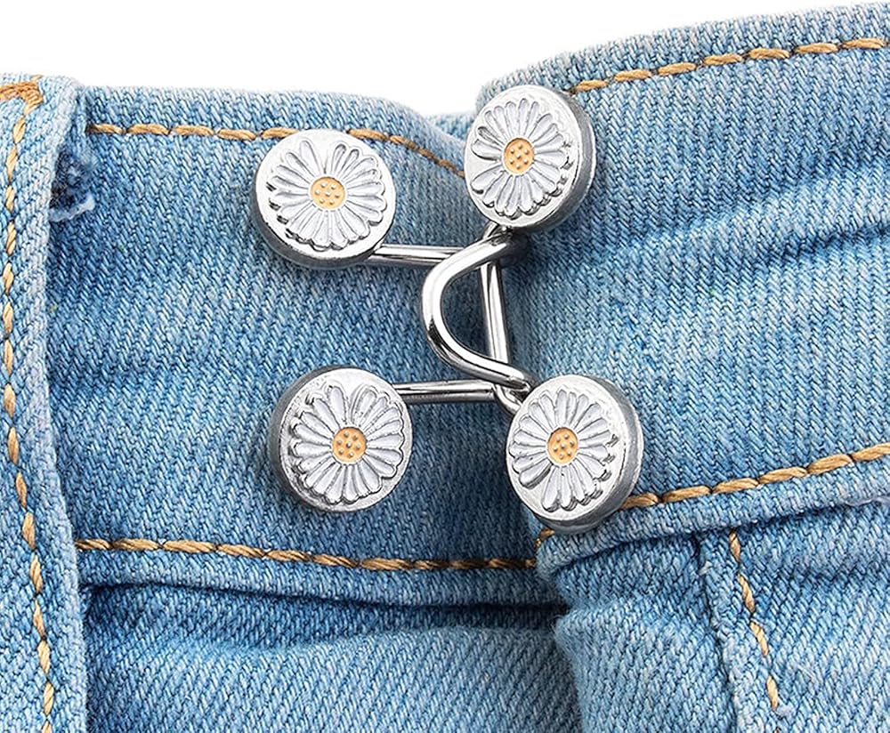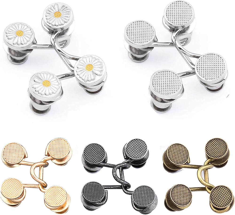يمكن استخدام زر تعديل الخصر للبنطلونات والجينز والتنانير والأطواق وما إلى ذلك. يمكن أن تساعدك على ارتداء سروالك المفضل الذي قد يكون فضفاضًا جدًا بحيث لا يمكن ارتداؤه. يمكن استخدامها أيضًا كزينة لطيفة للملابس.