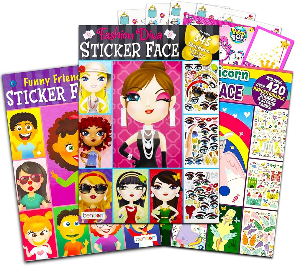 كتب ملصقات الأميرة ميك أ فيس ديفا للأطفال الصغار - مجموعة من 3 كتب جامبو مع أكثر من 90 و750 ملصقًا (مجموعة أنشطة الوجه الملصق).