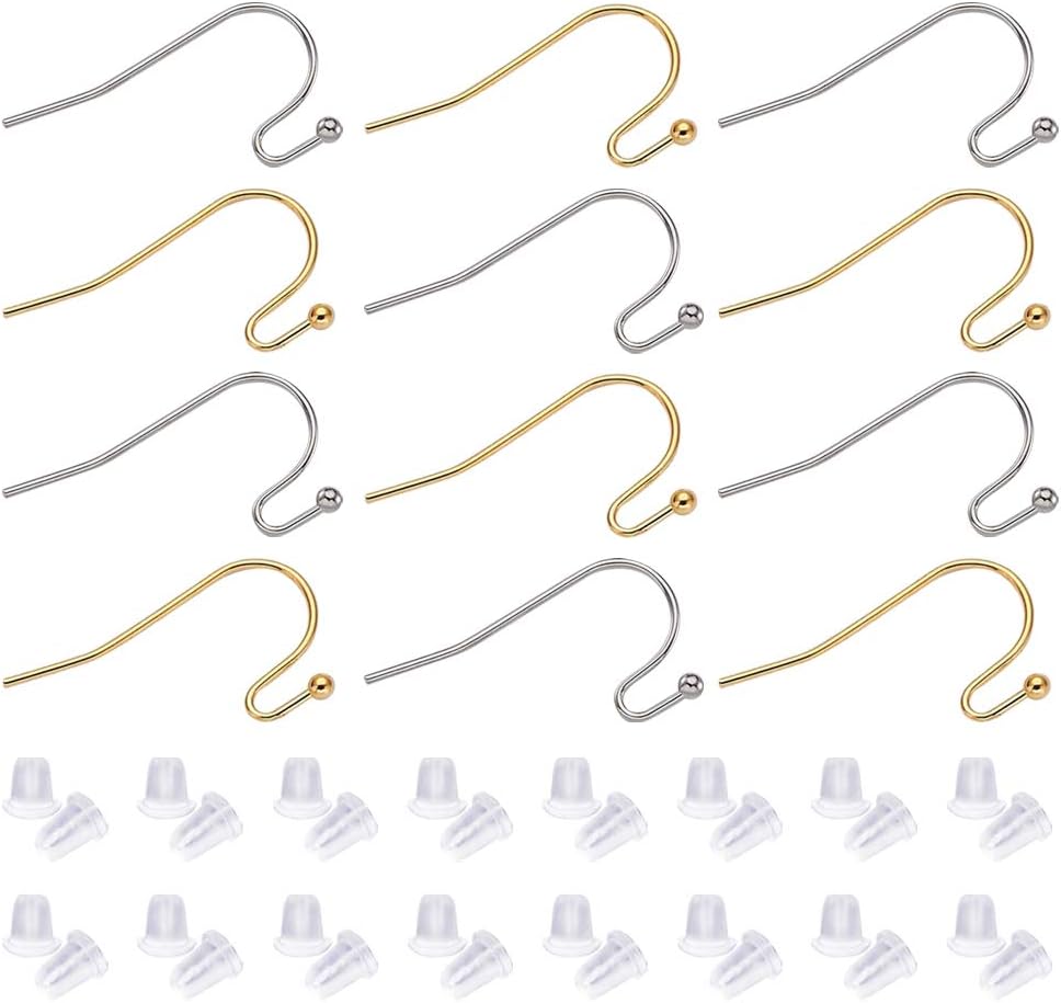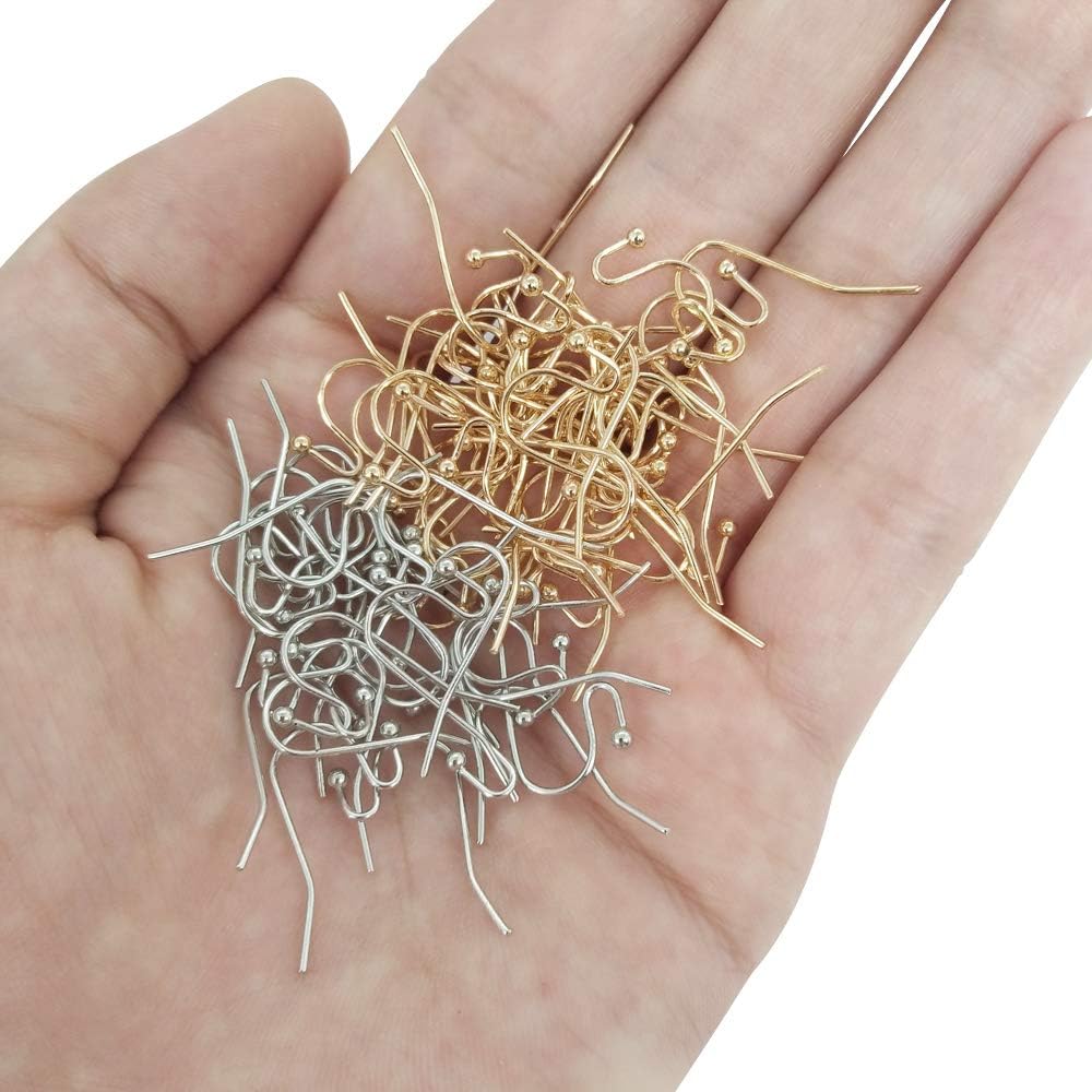 العبوة: 100 قطعة من أسلاك الأذن الفضية، 100 قطعة من أسلاك الأذن الذهبية و200 قطعة من أقراط الأذن.