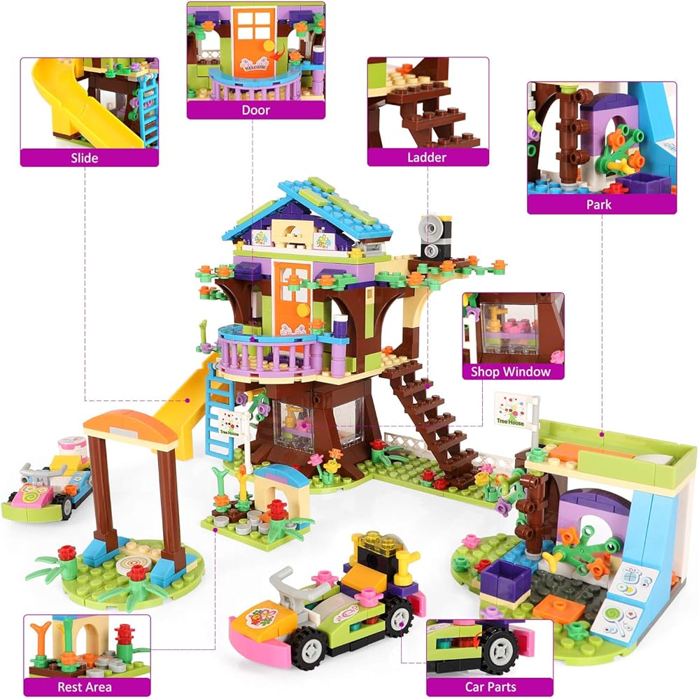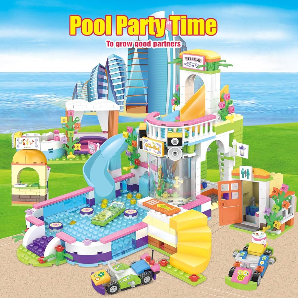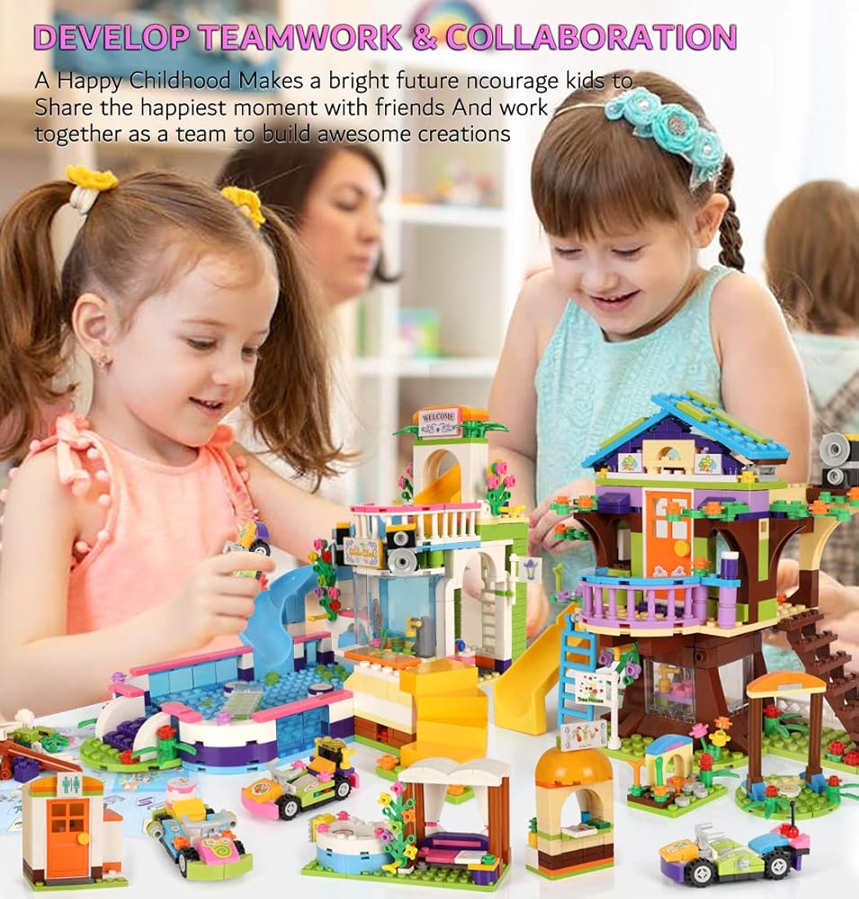 مجموعات مكعبات بناء بيت الشجرة، مجموعة بناء العاب ابداعية لحفلات حمام السباحة للاطفال، 1274 قطعة تعليمية لعب الادوار هدية عيد ميلاد مع صندوق تخزين للبنات 6-12 سنة