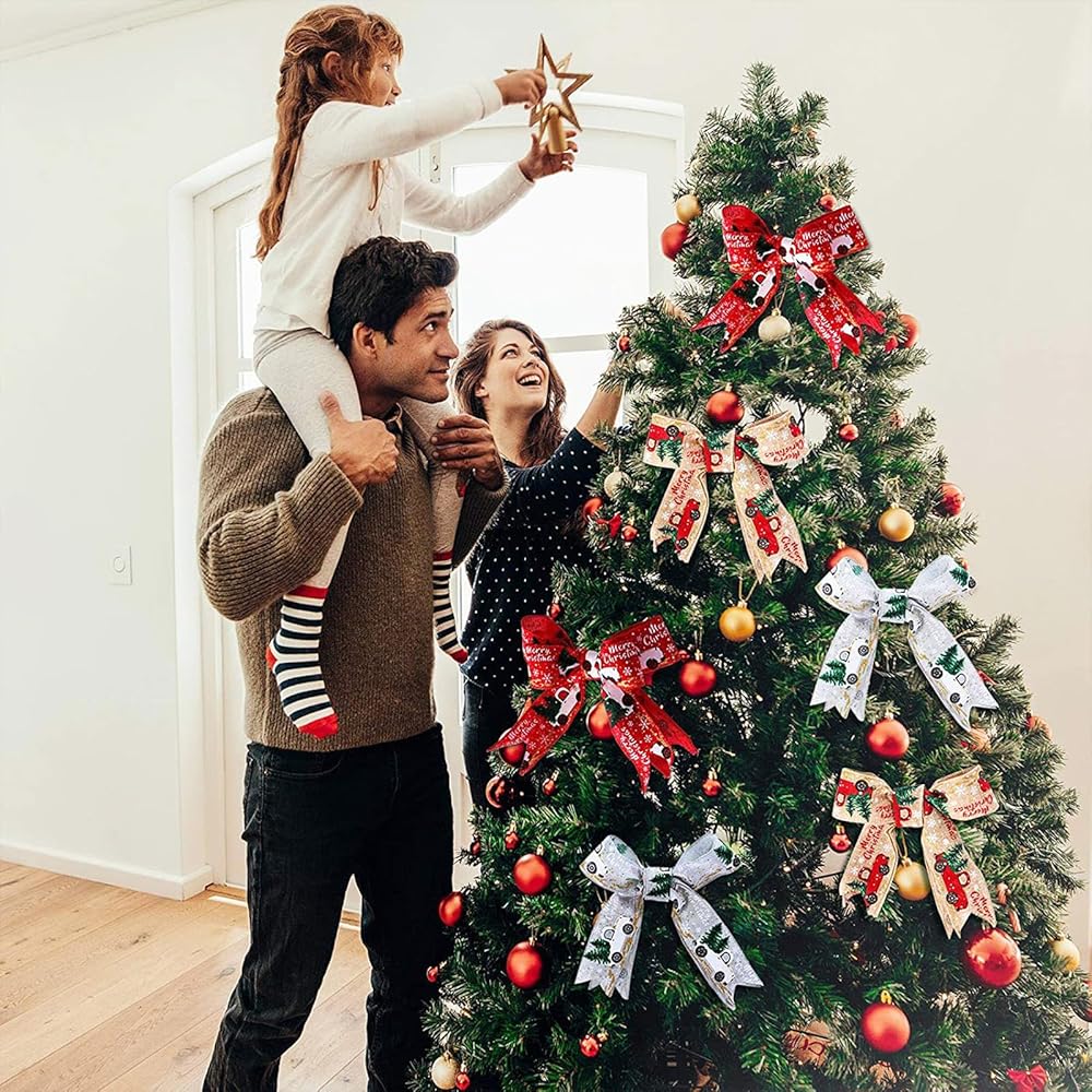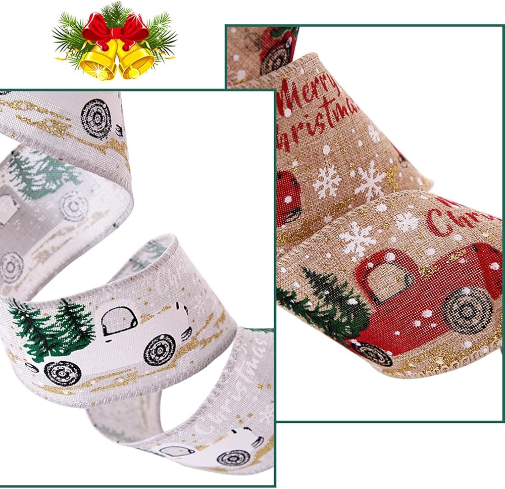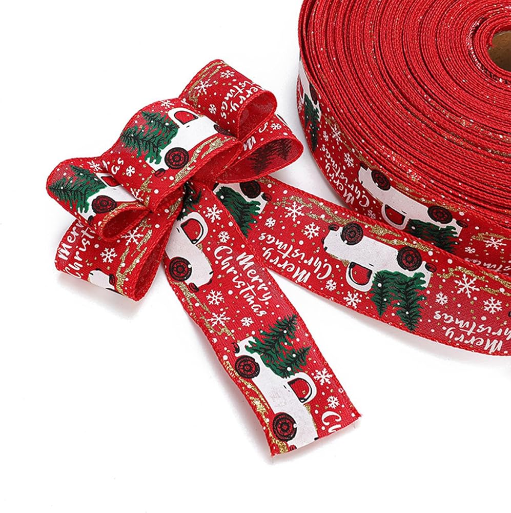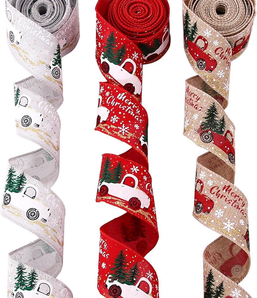 auwiyd شريط عيد الميلاد المطبوع شرائط الخيش عيد الميلاد الكلاسيكية التفاف شجرة عيد الميلاد الشريط DIY بها بنفسك عيد الميلاد هدية المنزل التفاف الزفاف الديكور 3 لفة 6.56 ياردة