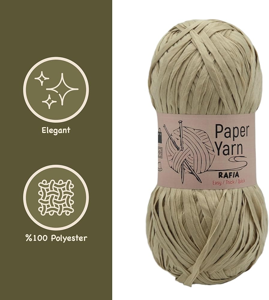 معلمات خيوط ورق الكرافت: 100% بوليستر، 2 خصلة من خيوط ورق الكرافت في العبوة، وكل غزل يبلغ حوالي 100 جرام (حوالي 110 م / 120 ياردة). خيوط ورق كرافت رائعة من البوليستر بنسبة 100%.