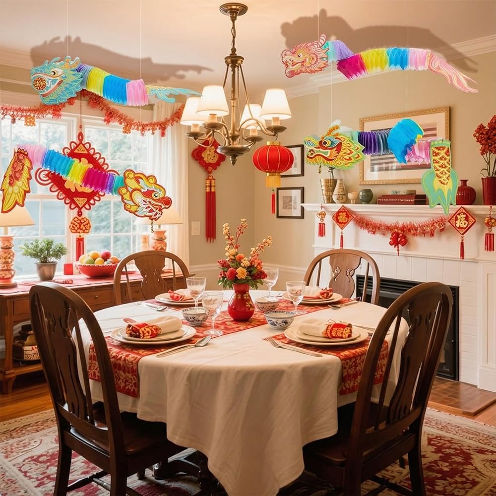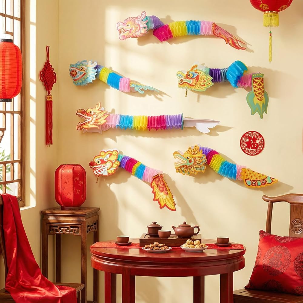 • مادة رائعة: جرب الاندفاع الهائل من الألوان النابضة بالحياة والبهجة مع ديكورات التنين الورقية الصينية الخاصة بنا، مصنوعة من ورق عالي الجودة، يضيف الملمس الرقيق والملمس الرائع هالة من الأصالة؛ أشرك جانبك الإبداعي وانغمس في الثقافة الصينية الرائعة مع ديكورات التنين الورقية المذهلة هذه