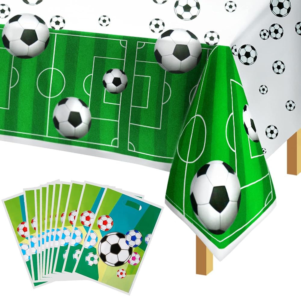 ❤ قيمة رائعة - تتضمن العبوة 3 قطع من قماش الطاولة بتصميم كرة القدم مع 10 قطع من أكياس هدايا كرة القدم، رائعة لتزيين حفلات عيد ميلاد كرة القدم، وذلك لجلب المزيد من المرح للحفلات. المقاس: 54 × 108 بوصة.