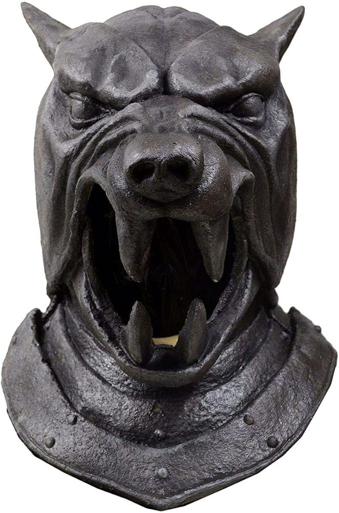 ساندور كليجن لديها قضمة خطيرة. كن خطرًا بقدر ما سترتدي خوذة ذا هاوند للبالغين. نسخة طبق الأصل من خوذة المعركة التي ارتدتها هاوند عندما معركة بيريك دوناريون، فهي تناسب رأسك وتتميز بوجه كلب وفم مفتوح. معياري