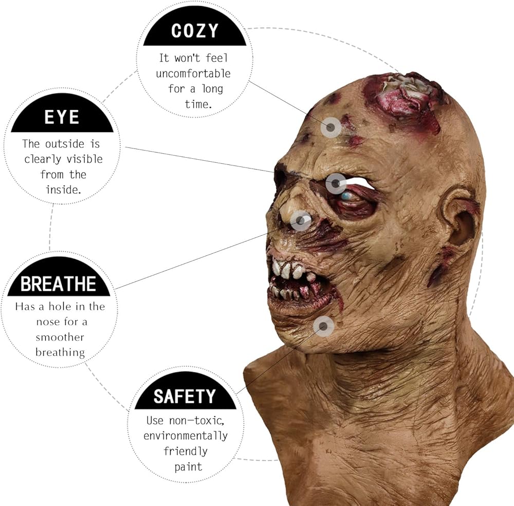 ★ NON-TOXIC ODORLESS--The biochemical monster mask be made of high-quality 100% natural environmental rubber latex. Deodorization treatment has been done in the production process. non-toxic, non-dissemination of odor, water-proof insulation, and a very natural realistic and easy to clean.★