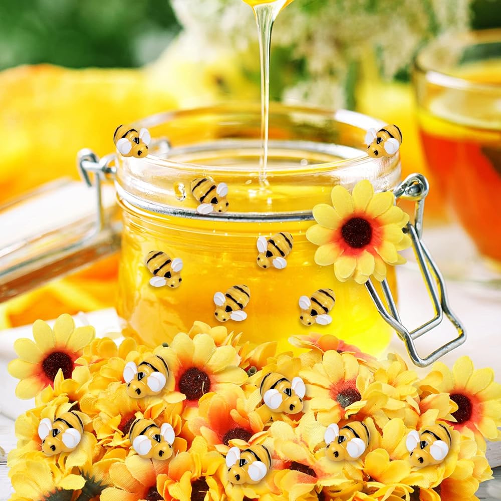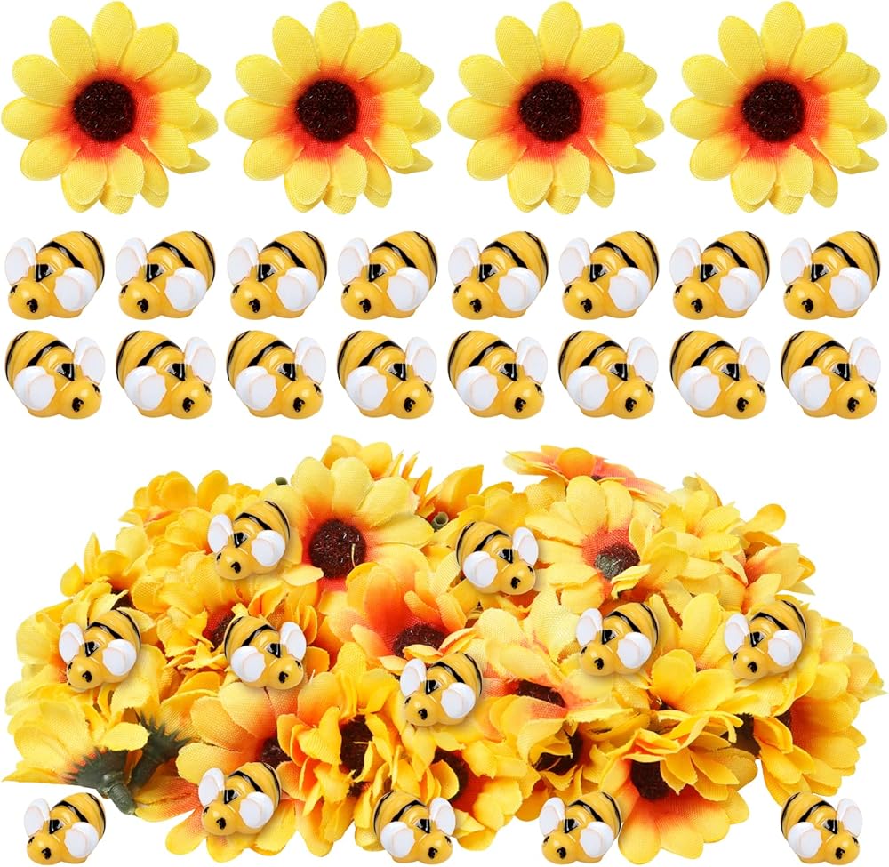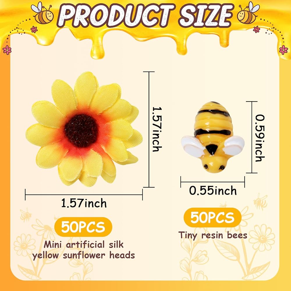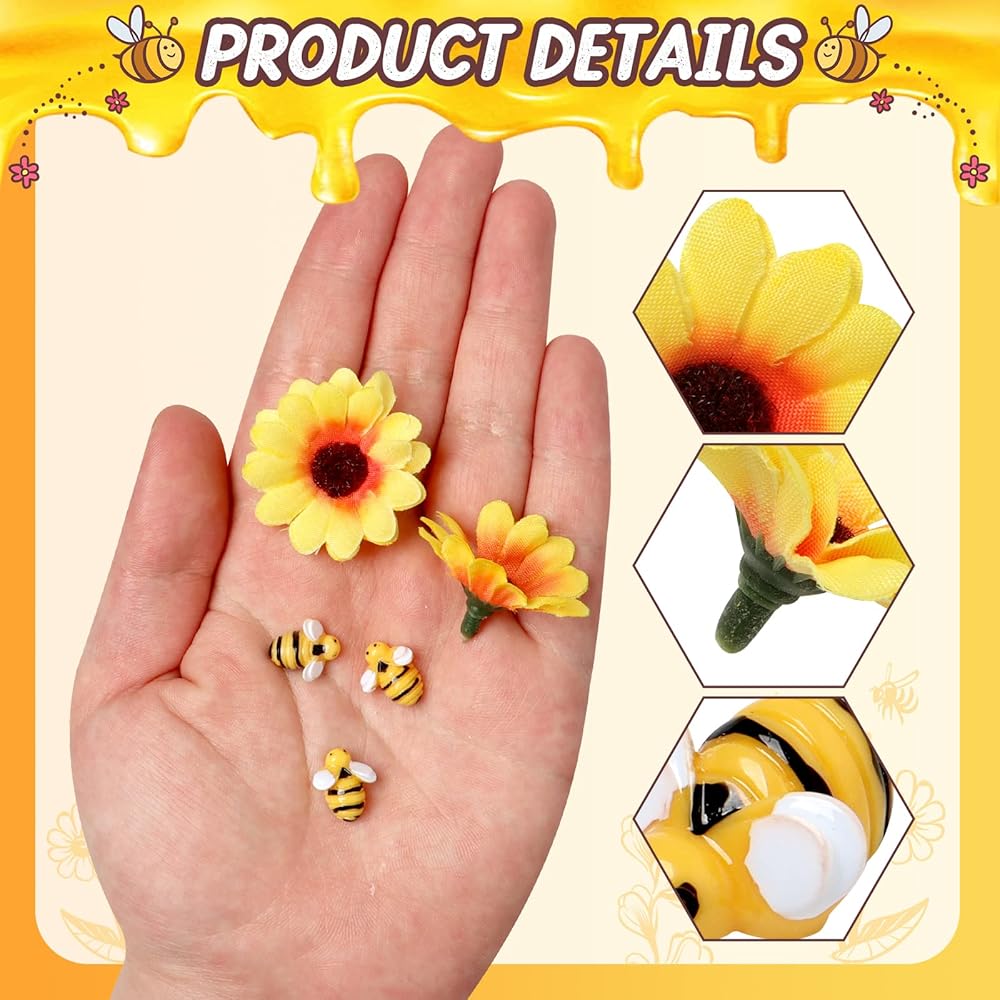 كمية كافية: تحتوي كل عبوة على 50 نحلة صغيرة من الراتنج و50 زهرة عباد الشمس، كافية لتلبية احتياجاتك اليومية للتزيين.